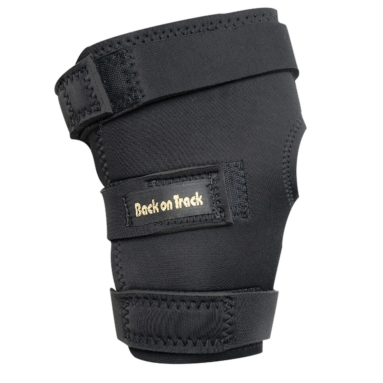 Hasebeskytter til venstre ben med åpning til hasen. Tre borrelåsstropper.