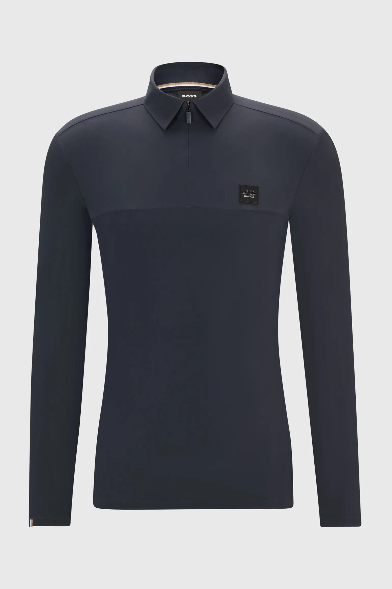 Signature Stripe treningspolo ELTON er laget av høykvalitets, sporty materiale. Stoffet er pustende og gir perfekt bevegelsesfrihet.Detaljer: Smal silhuett glidelås i Cana di Fucile med faux lær logo-puller, flagg på kanten av høyre erme.