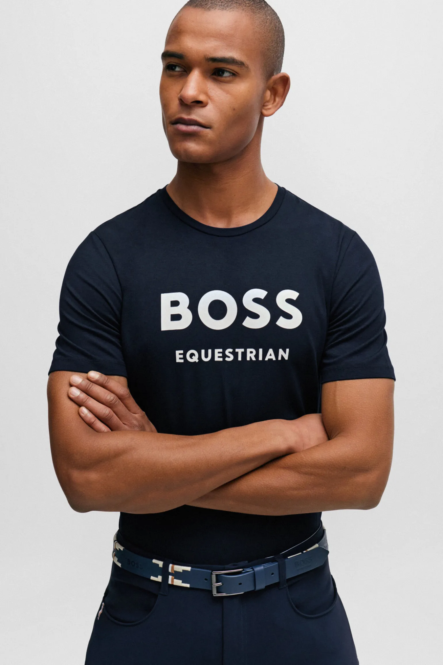 - Stor BOSS Equestrian-logo på brystet