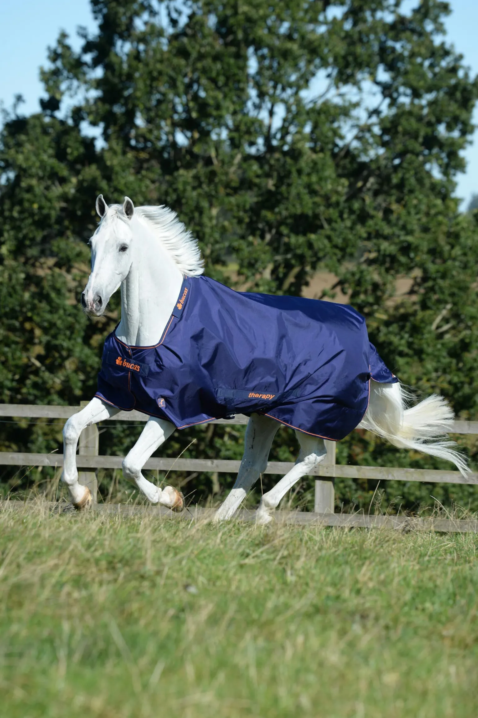 Bucas Therapy Turnout kombinerer den utrolige slitestyrken og komforten til Bucas’ ballistiske nylon-dekken med de terapeutiske egenskapene til Bucas Therapy-stoffet. Bucas Therapy-materialet er laget av et ekstremt fint rustfritt stålnett som reflekterer de magnetiske feltene som skapes i kroppen. Denne handlingen stimulerer blodsirkulasjonen og oksygentilførselen i hestens kropp og rygg, noe som fremskynder helingsprosessen, reduserer hevelse og betennelse. Den kan brukes på hesten 24 timer i døgnet, syv dager i uken, da det IKKE er et magnetisk dekken. Det anbefales å øke bruken gradvis og overvåke effekten ved første gangs bruk. Disse terapeutiske dekkene er det ideelle valget for å hjelpe hester, inkludert de med ryggproblemer eller de som er litt trege til å varme opp før ridning. Det har vært kjent å fremskynde gjenopprettingsprosessen for visse plager, inkludert leddgikt og muskelsmerter. De terapeutiske egenskapene kan ikke vaskes ut. Det silkemyke Dermo-care-fôret transporterer fuktighet bort og holder innsiden av dekkenet og hesten tørr. Dette dekkenet har det patenterte Click窶冢 Go-frontsystemet med magnetisk Snap-lock-lukking. Tilgjengelig kun i Classic Cut, hals selges separat.