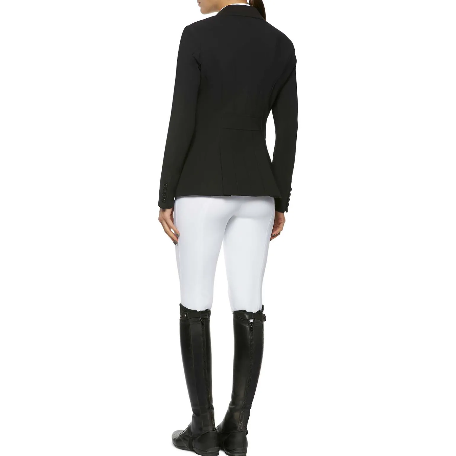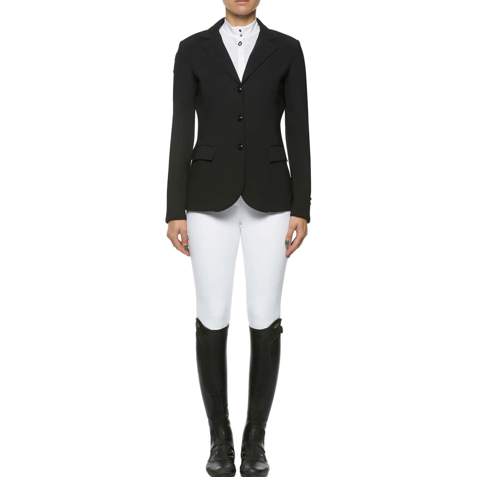 Denne ridejakken med klassisk snitt er forfinet med en alcantarakrave og kontrasterende kanting. Det tekniske 4-veis stretchmaterialet kombinerer eleganse og ytelse: det følger dine bevegelser og gir pusteevne, vannavstøtende egenskaper og antibakterielle egenskaper. Jakken har to frontlommer og knappelukking foran, med en subtil preget logo på skulderen.