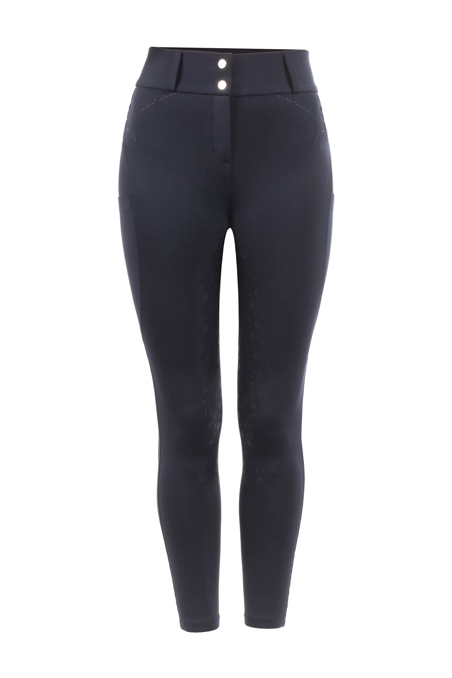 - Komfortable rideleggins med utseendet til klassiske ridebukser, forsynt med gnistrende detaljer