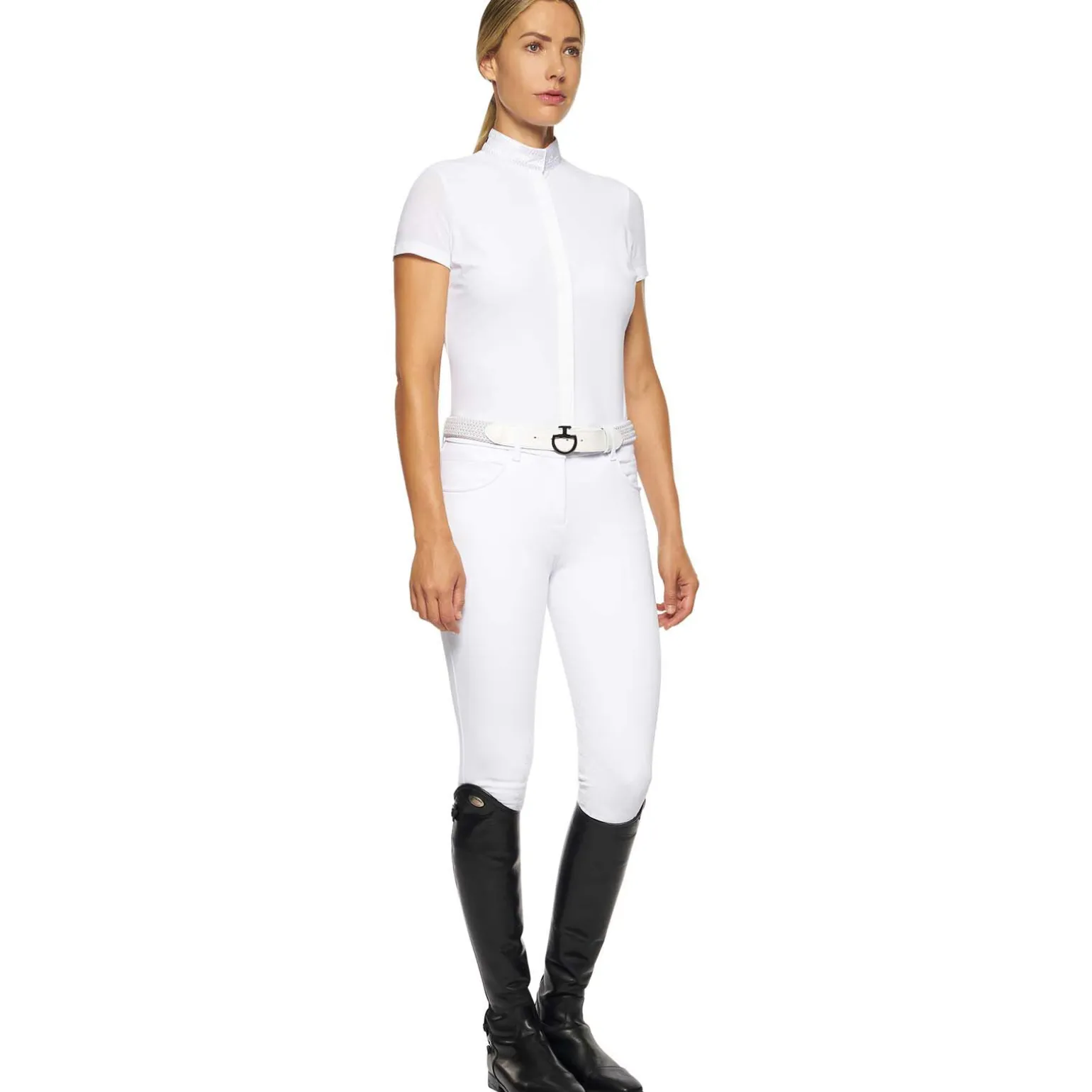 This competition short sleeved shirt made of technical bi-stretch jersey combines comfort, elegance and functionality. Also, its breathable, antibacterial and fast drying fabric is perfect for competition use. This shirt is fastened with a row of buttons covered by a piece of cloth and is made of technical jersey.