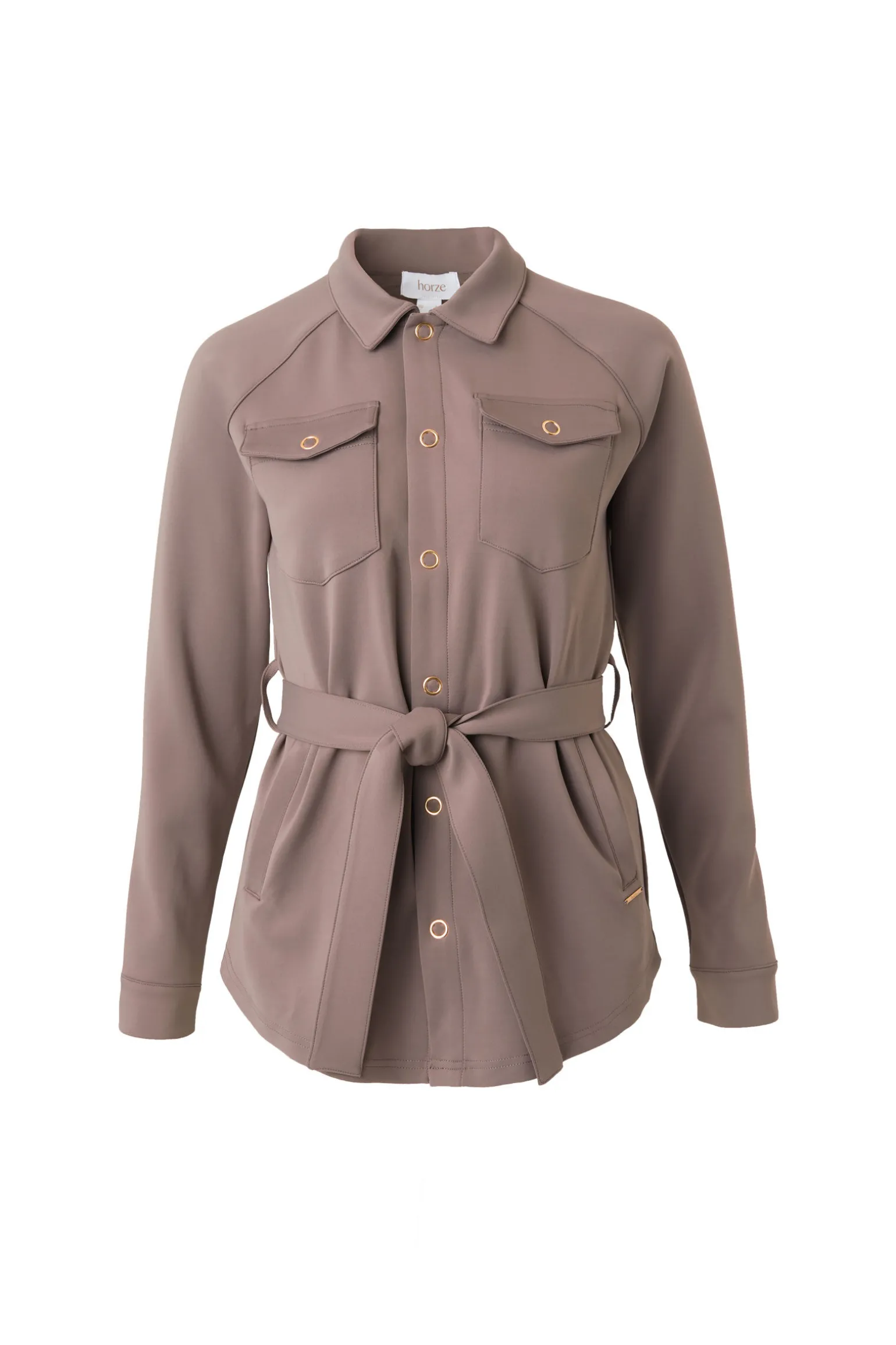 Alyssa skjortejakke til dame er en kombinasjon mellom en klassisk skjorte og en lett jakke.Den løse formen er fortsatt pen, takket være det avtakbare beltet.Romslige brystlommer og glidelåslommer foran gir deg masse plass for å raskt legge vekk ting du har i hendene, eller verdisaker.Det lette scuba-stoffet er pustende, smussavvisende og gir UV-beskyttelse, noe som gjør det perfekt til de dagene du er i stallen.