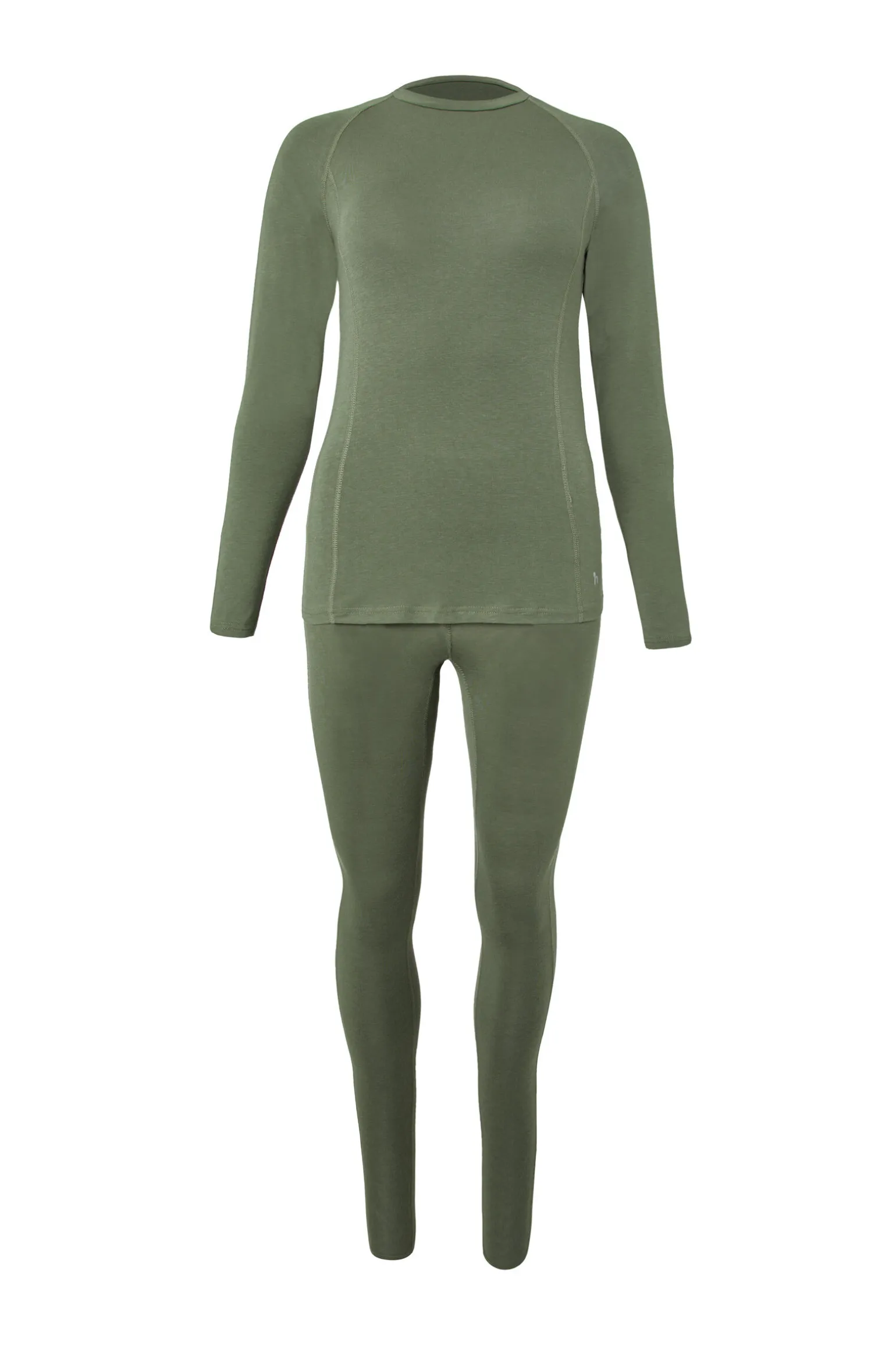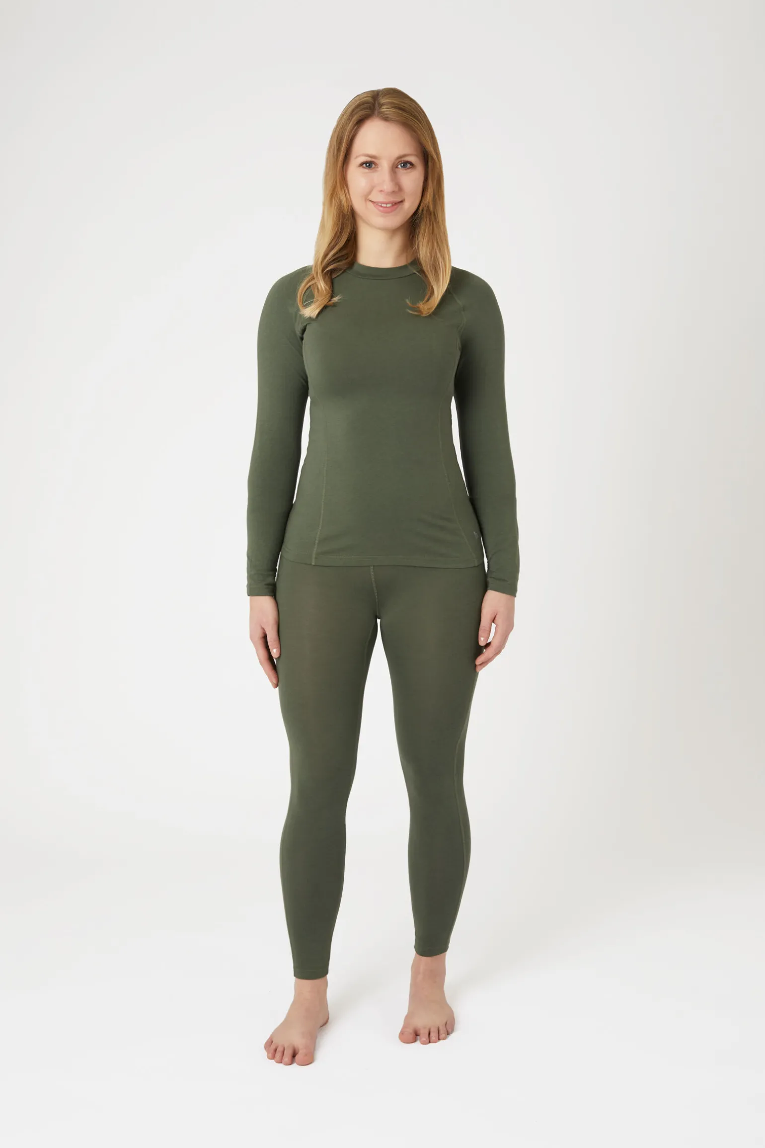 Horze Bamboo undertøy-sett er mykt, komfortabelt og delvis laget av bærekraftig materiale.Den langermede skjorten med høy hals gir ekstra varme, og tightsen med høyt liv holder den på plass.Bruk dette settet under dine beste ridebukser og genser for å holde deg varm på kalde vinterturer eller stalldager.