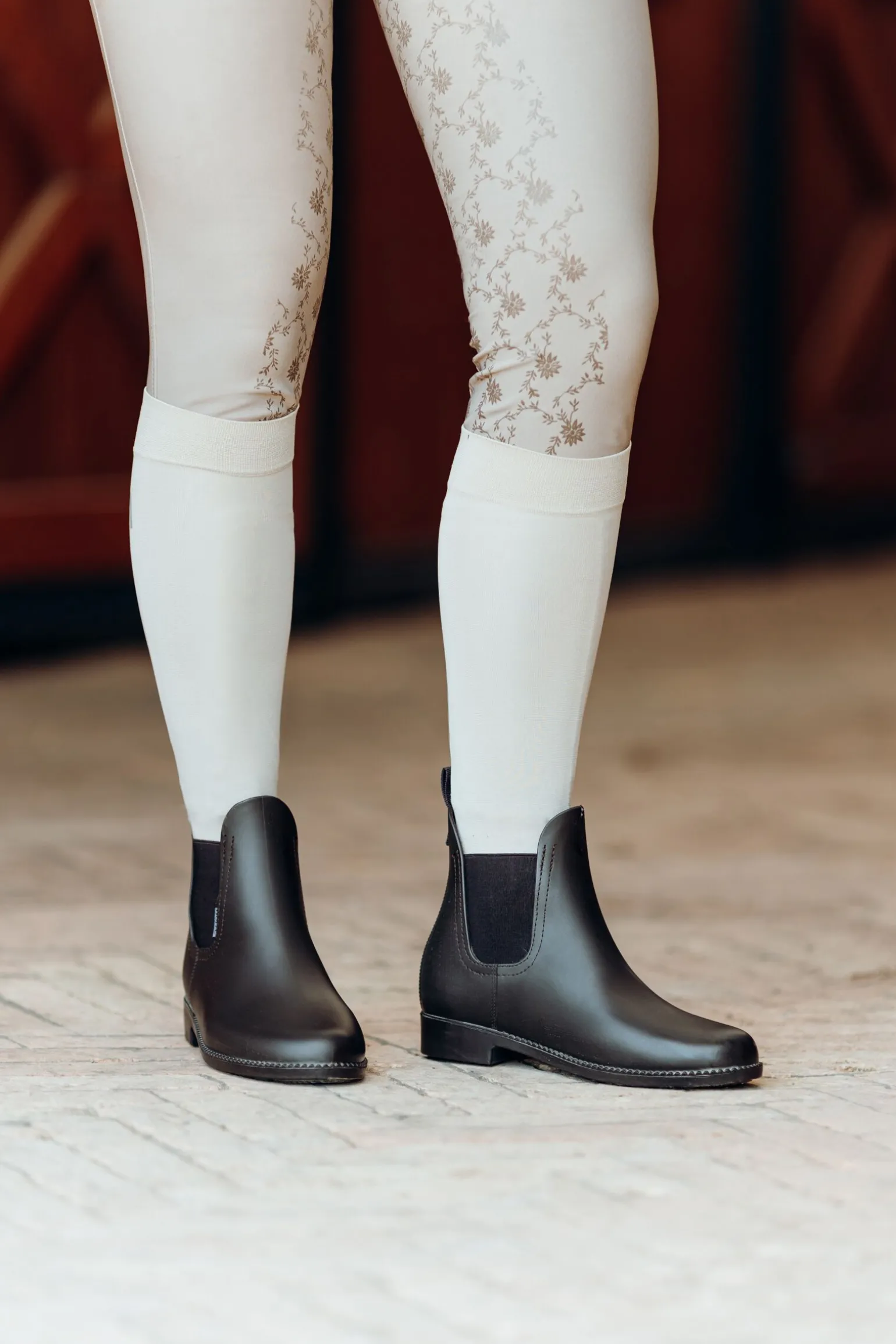 Disse vanntette skoene ser ikke bare klassiske og stilige ut, de holder også beina tørre. De elastiske sidene gjør de enkle å ta på uten gnaging. Den robuste sålen gir et trygt grep på ulike underlag. Bruk dem med chaps og få effekten av klassiske ridestøvler.