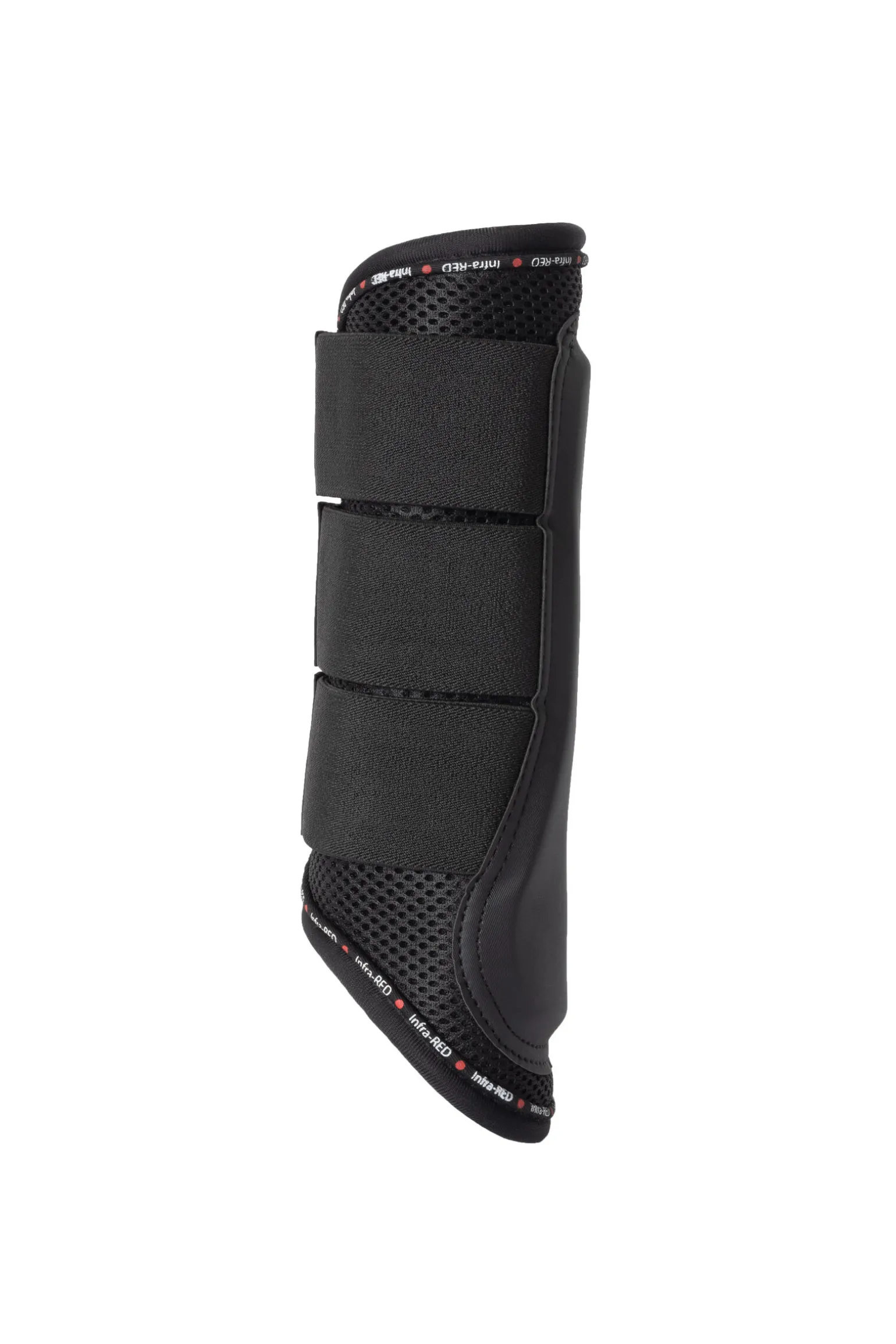 Pustende stryksokker med infrarød innside og stryksone i holdbar ballistisk nylon. De keramiske partiklene som er vevd inn på innsiden absorberer hestens kroppsenergi og frigjør lange, infrarøde stråler som trenger dypt gjennom huden og har en stimulerende effekt på blodsirkulasjonen i beinet. Dette forbereder beinet på de belastninger av sener og ledd som kommer under trening.
