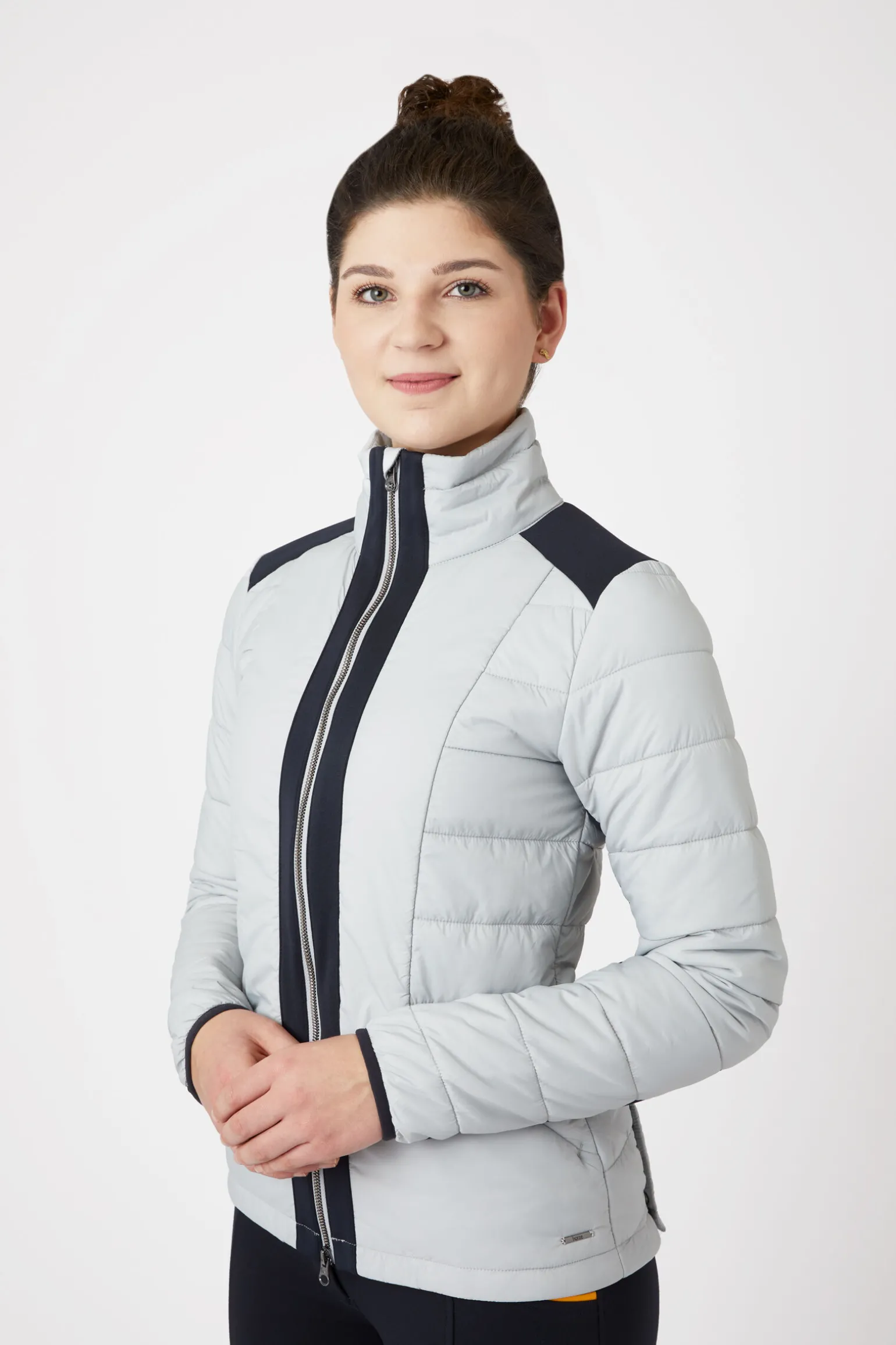Denne funksjonelle hybridjakken til dame har et lett fôr, er vattert på sidene og har et ensidig, elastisk fleecepanel bak, samt på ermene.Kontrastbånd på armene og glidelåsen.Vannavvisende og vindavvisene gjør dette til et perfekt plagg å bruke dersom du ønsker flere lag.3D logotrykk bak ved nakken og en liten logoplate i metall på kanten foran.To skjulte glidelåslommer holder eiendelene dine trygge under rideøktene.Knappene bak åpner en ridesplitt for økt bevegelsesfrihet i salen.