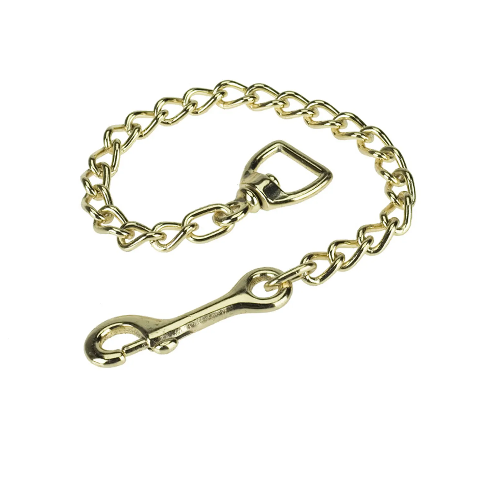 Enkel kjede for leietau, messing belagt. Total lengde: 53 cm.
