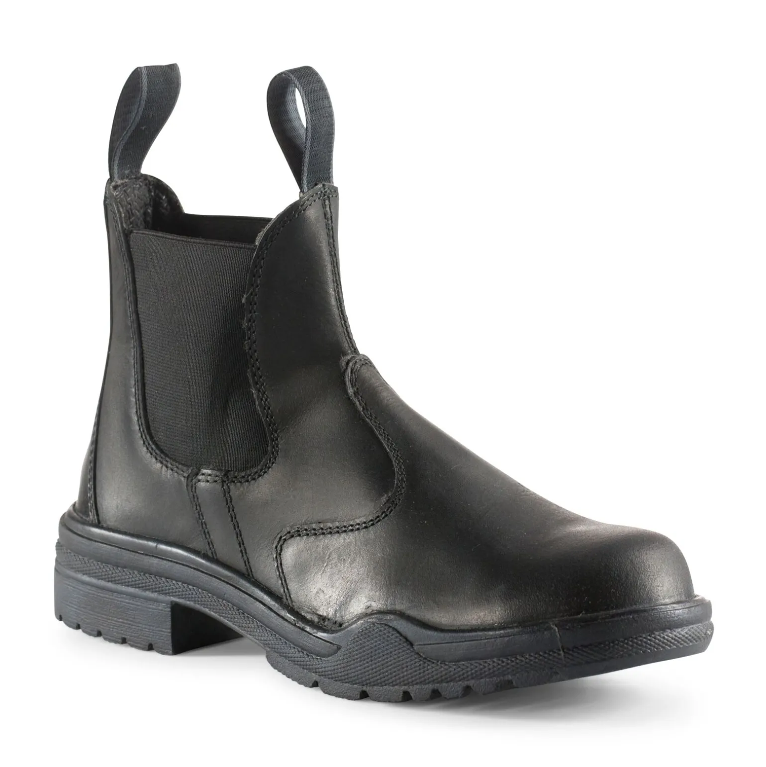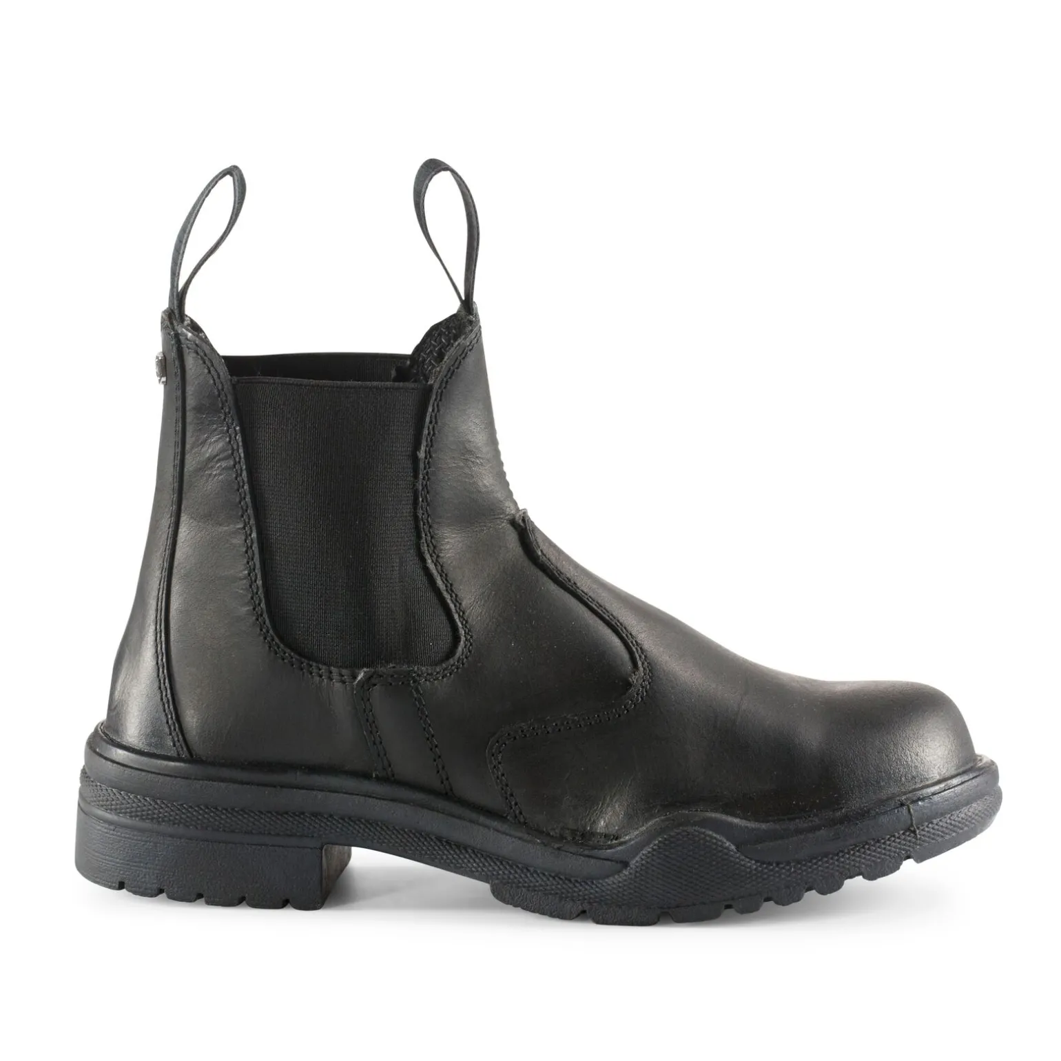 En ståhette gir sikkerhet til denne jodhpurskoen som er super til arbeid eller ridning. Du bare trekker den på deg, og den er lett å bruke. Den robuste sålen gjør disse skoene også ideelle til arbeid.