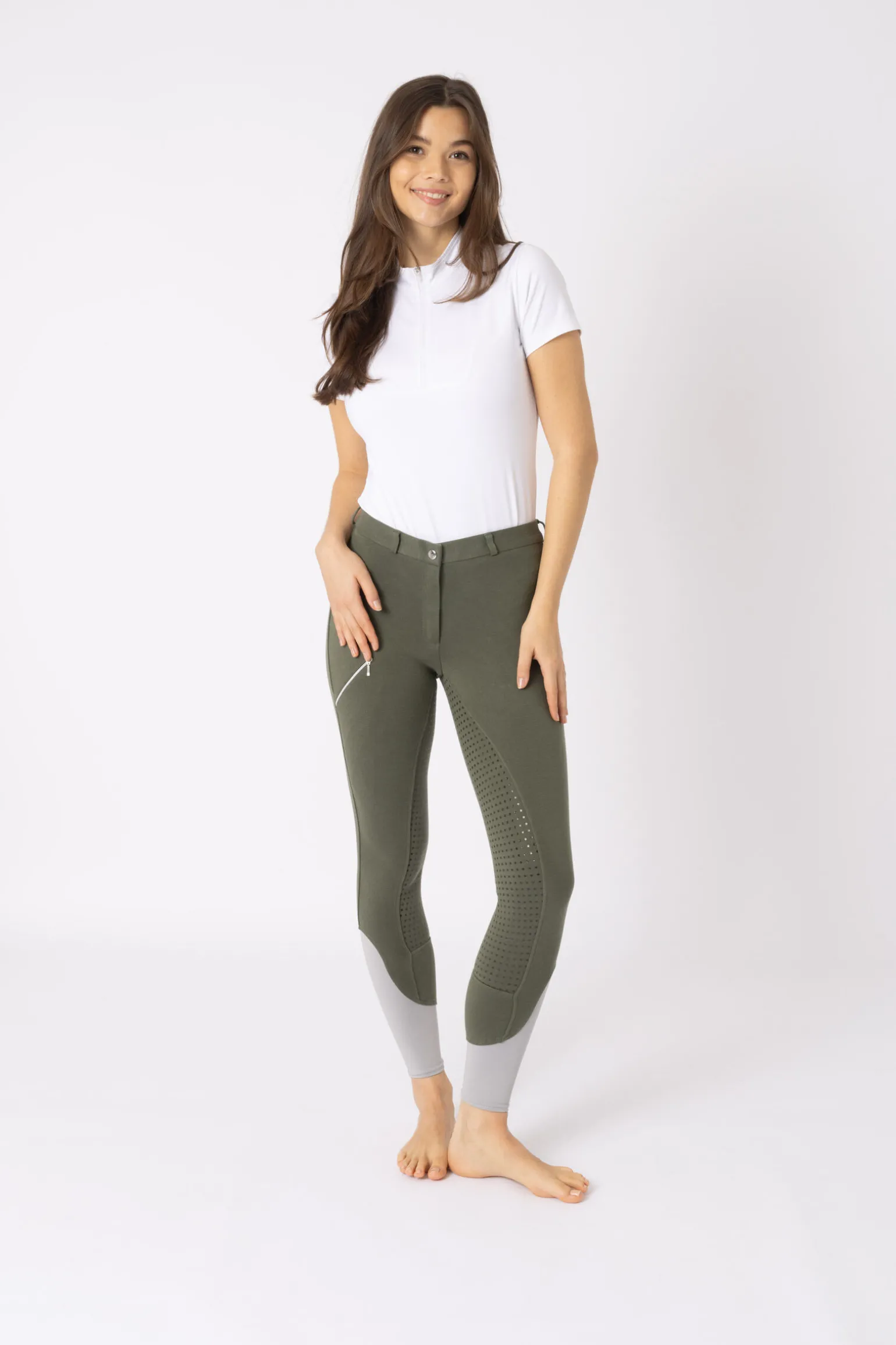 - Glidelåslomme på låret. Mykt materiale. Elastisk nederst på beinet i kontrastfarge