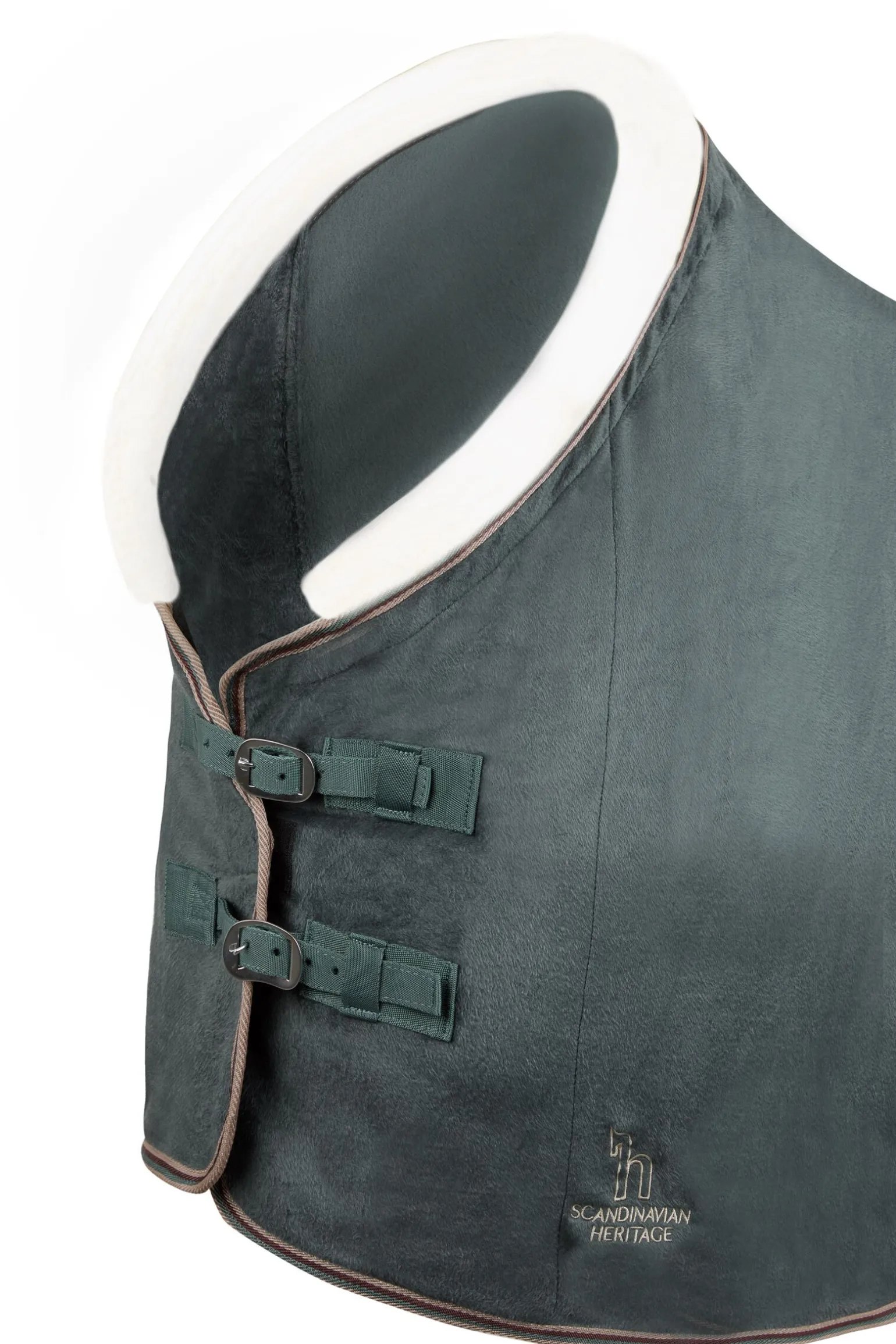 Horze Leighton svettedekken er laget av myk fleece med en behagelig fuskepels på kragen.Dobbel frontlukking, kryssgjorder og halesnor holder dekkenet på plass.Trykket kant langs ryggraden ser sporty ut, og brodering på siden lager et skandinavisk inntrykk.Kombiner dette dekkenet med resten av Horze Leighton Teens Collection for et matchende sett!