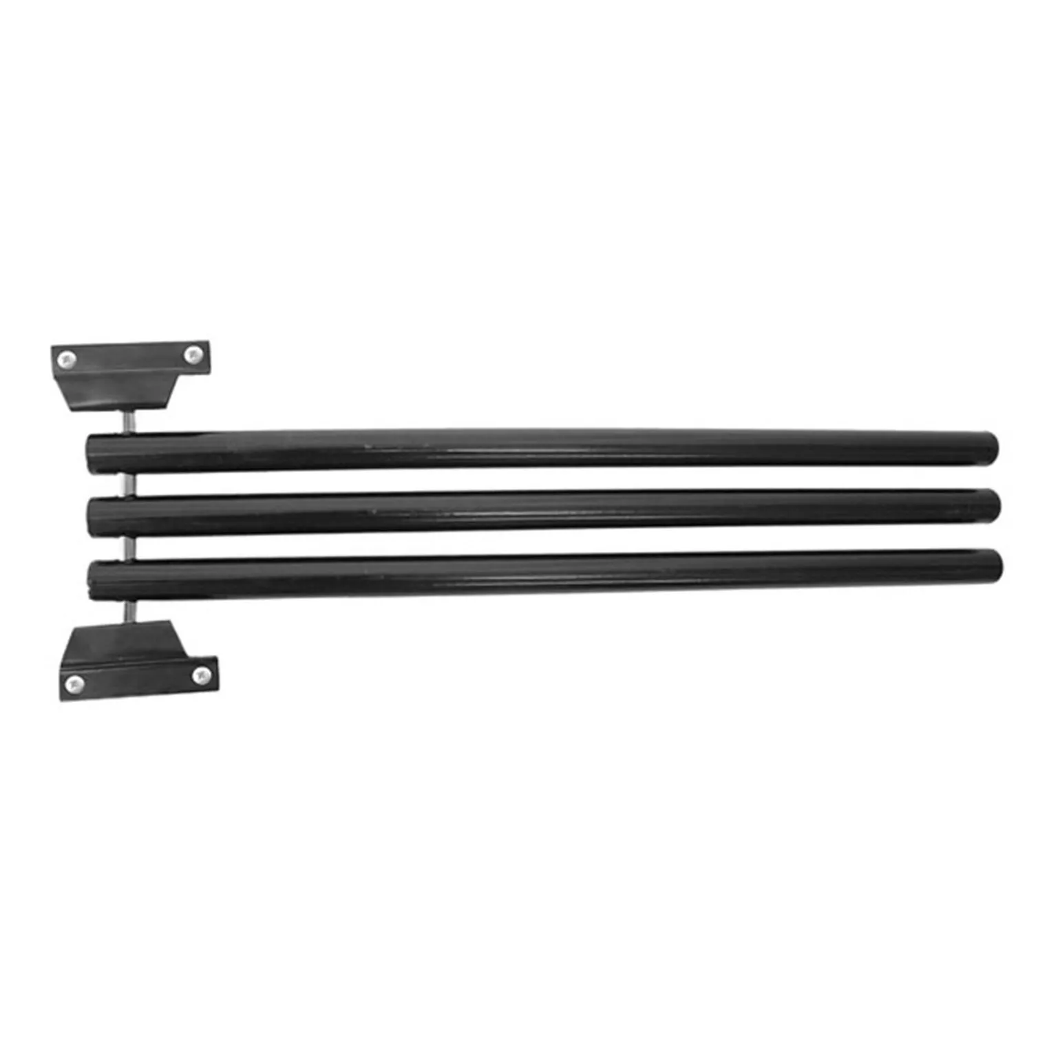 3-delt dekkenstativ. Ideelt til tørr og riktig oppbevaring av dekkener. Kan brettes sammen når det ikke er i bruk. Festes på veggen.