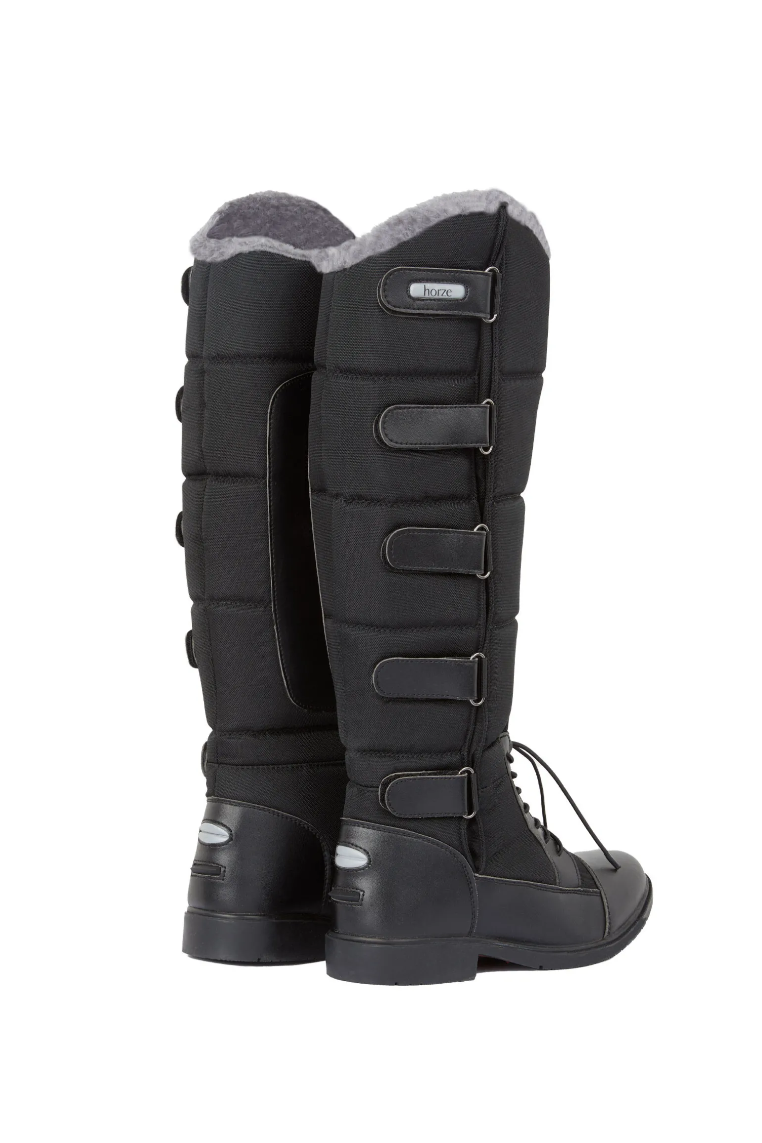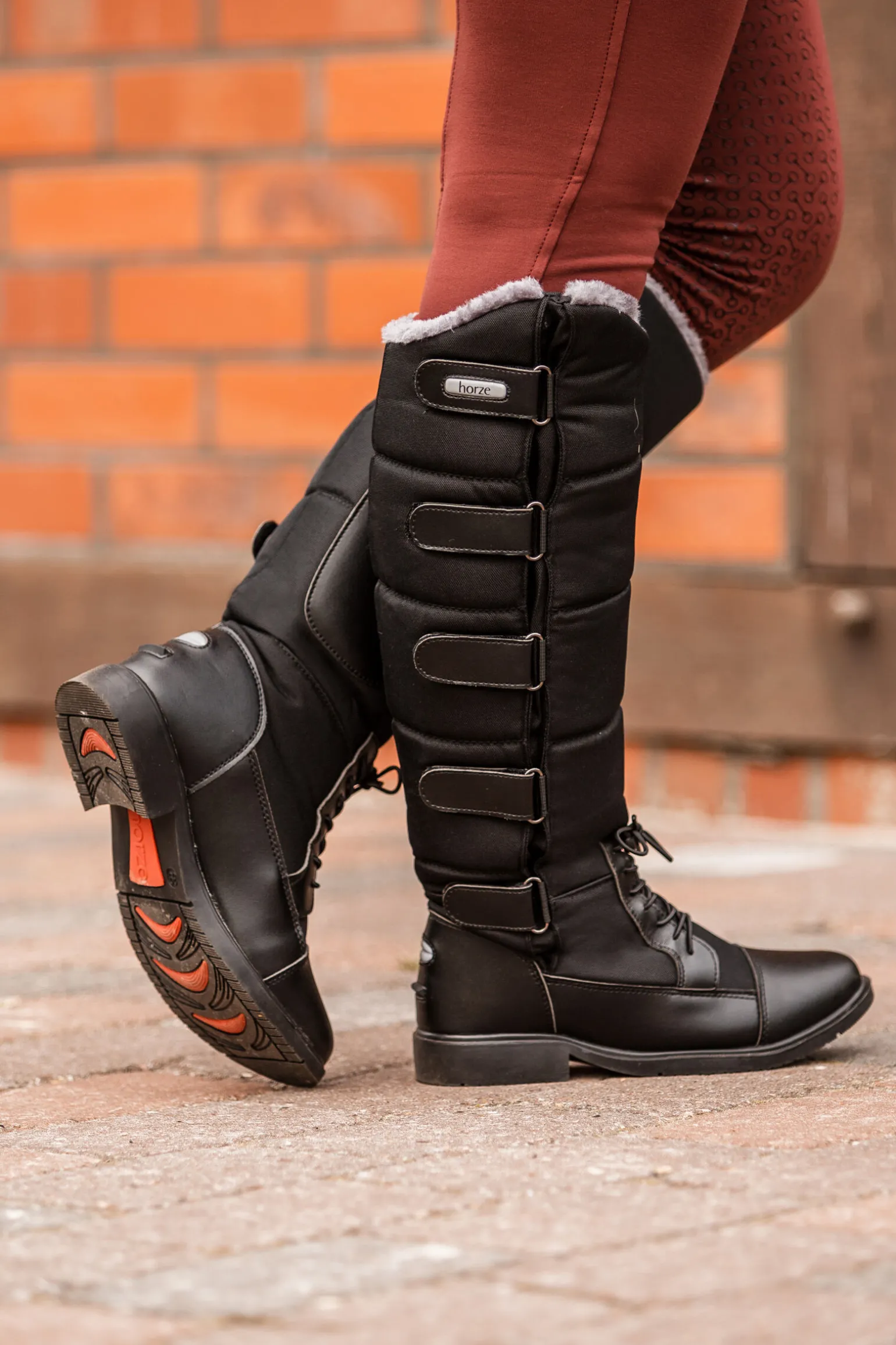 Horze Sherbrooke sko er perfekt til rideturer og stalldager om vinteren.Varme og vannavvisende materiale holder beina dine komfortable.Den holdbare sålen gir et godt grep på glatt underlag.Juster dem med borrelåsen for din perfekte passform.
