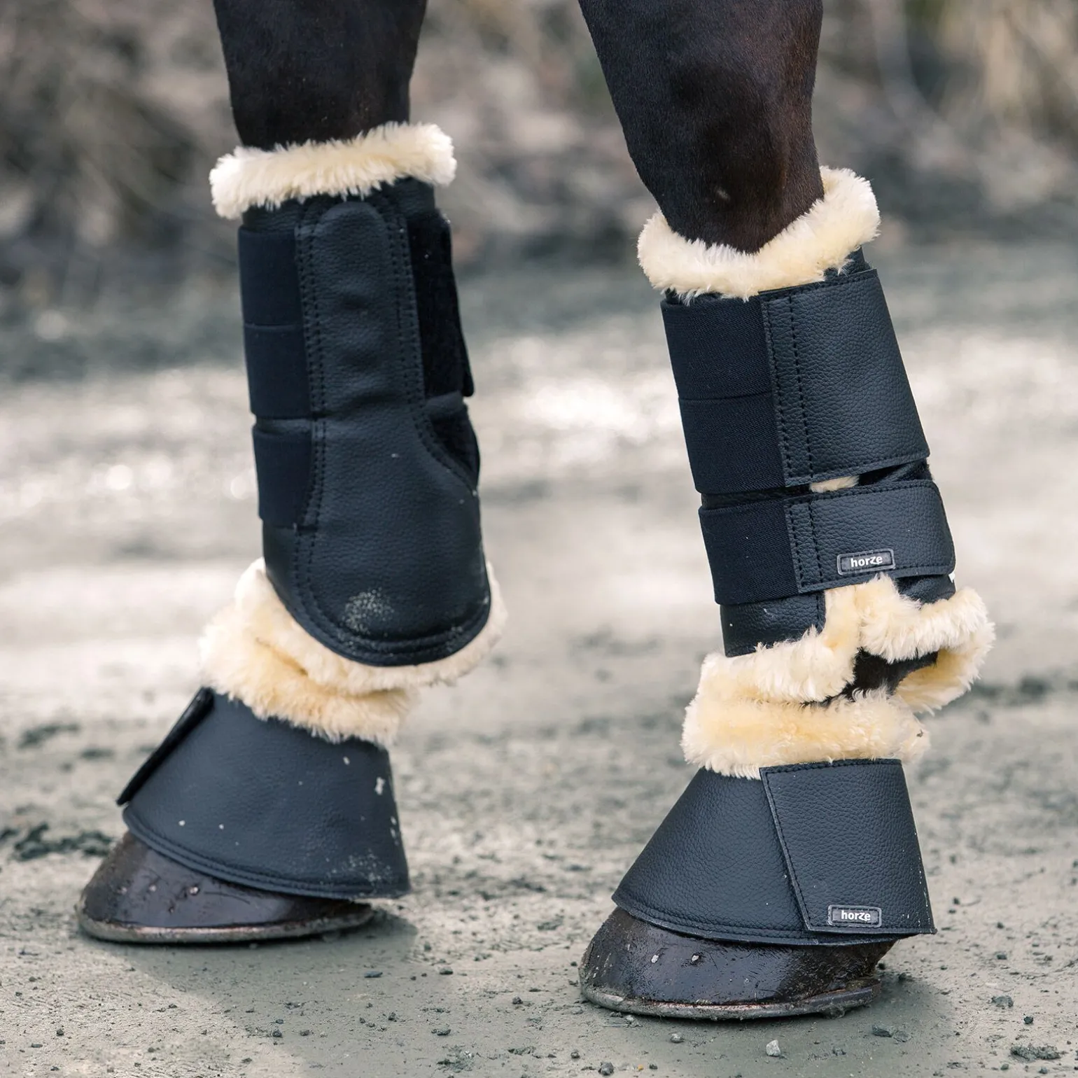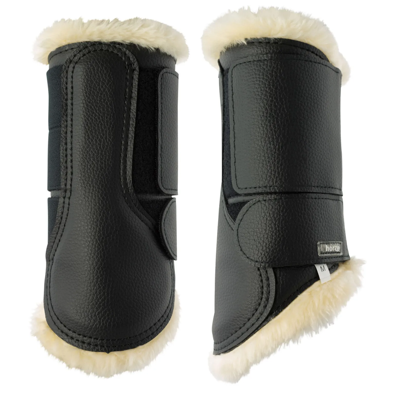 Stryksokker i utmerket kvalitet som beskytter hestens bein under trening og stevne, med en myk imitert kant av saueskinn, og et skall som er fleksibelt samtidig som det er hardt. Disse beleggene beskytter pipa og koden, og gir demping og beskyttelse mot slag og støt.