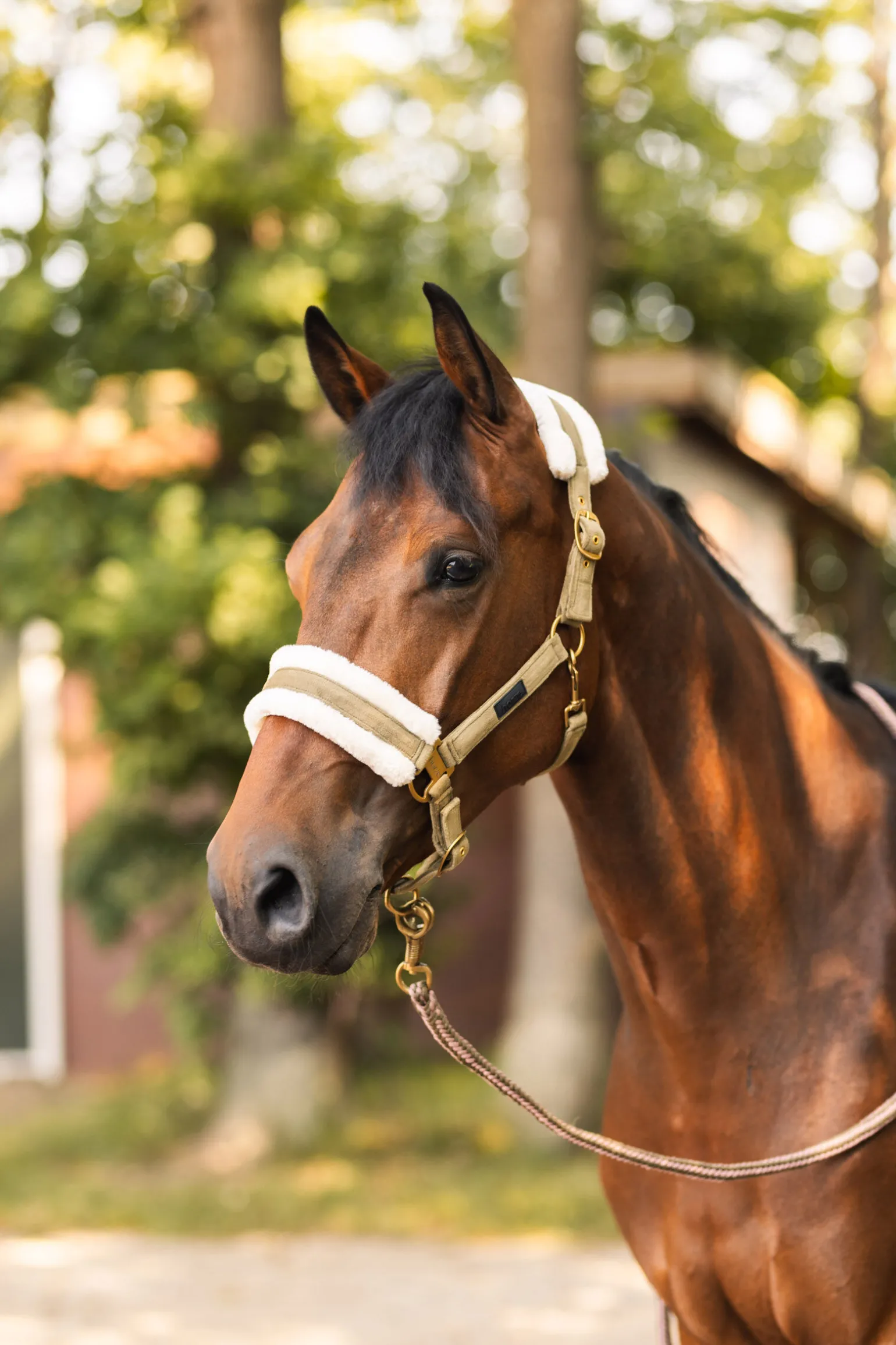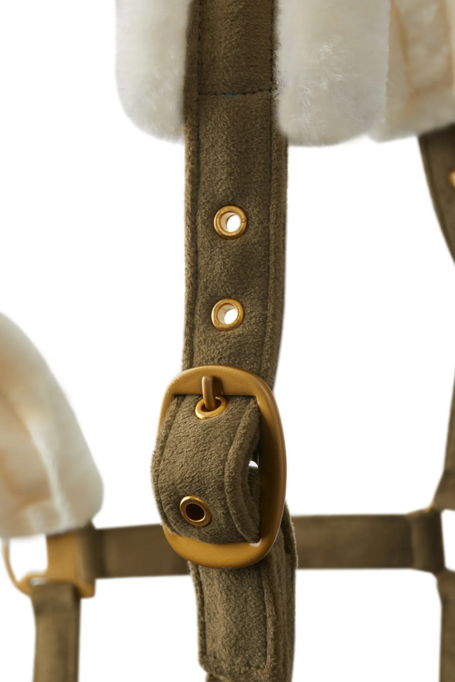 Denne grimen gir en luksuriøs og myk følelse da den er laget i semsket fløyelsstoff, samtidig som den er sterk. Holdbar web på innsiden sikrer pålitelig ytelse og god holdbarhet. Med justerbar nese og nakke kan du enkelt tilpasse grimen etter hva som er best for din hest.