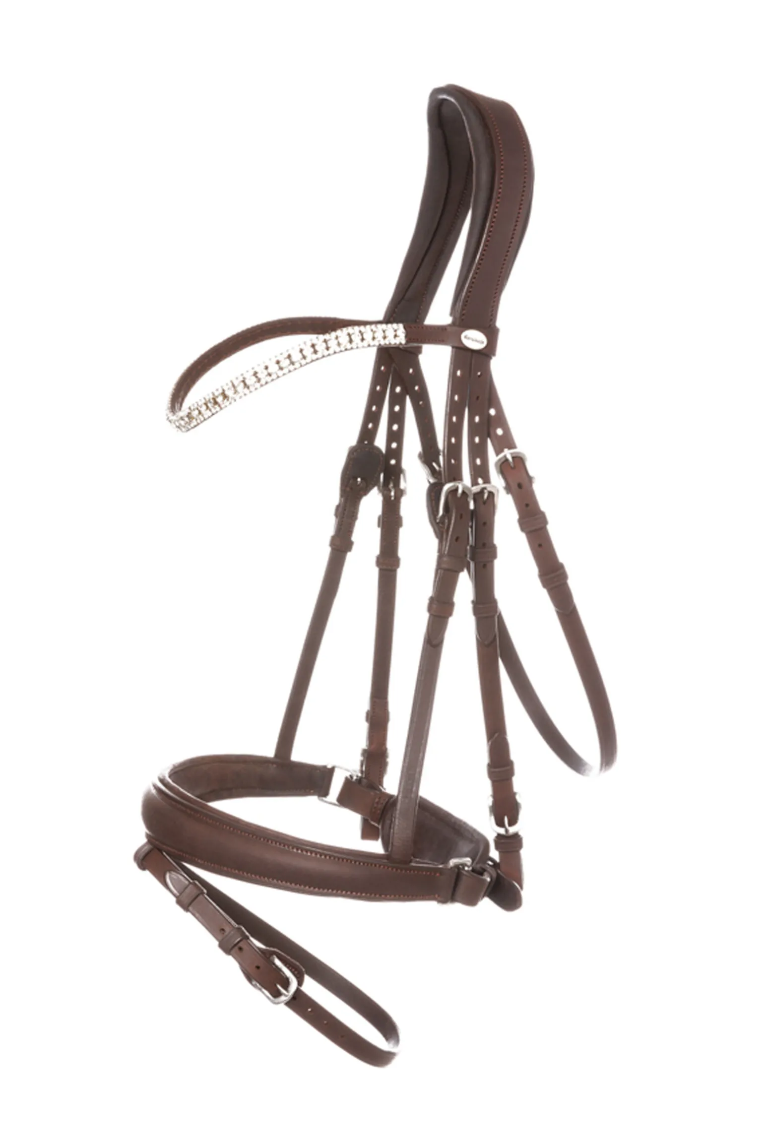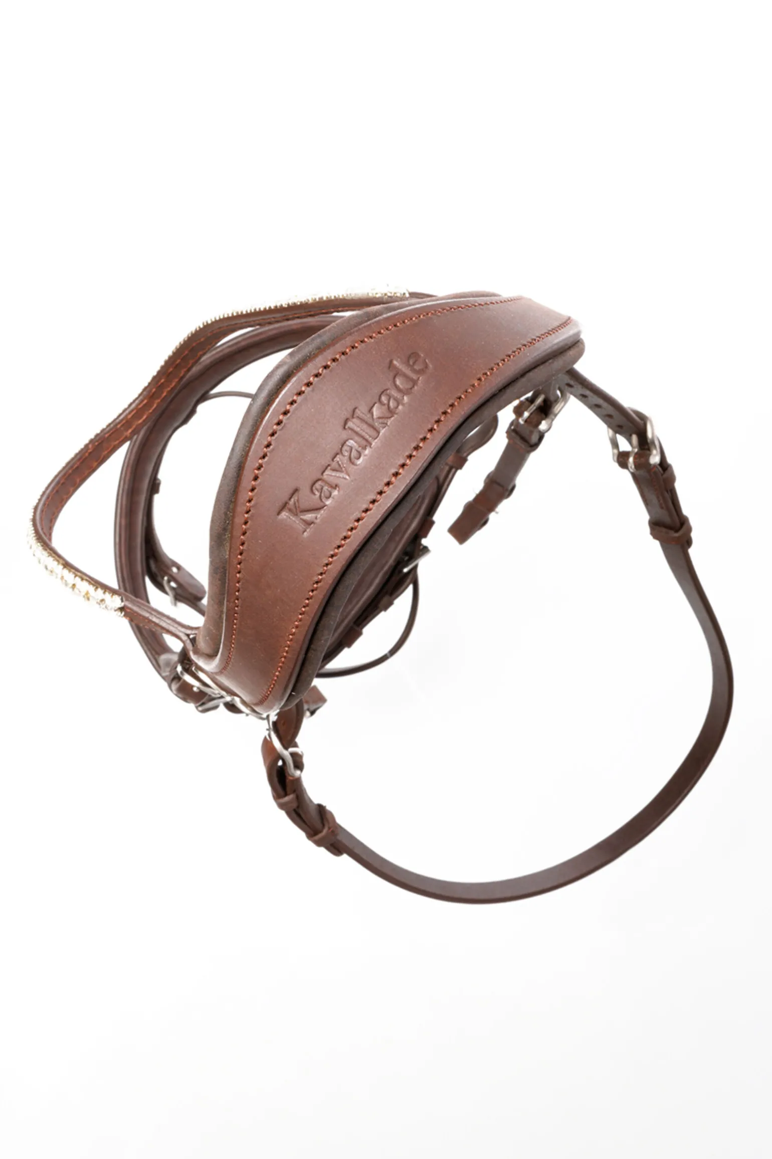 Myk, slitesterk og klassisk 窶ørsteklasses oljet lær og har et anatomisk formet, svært mykt polstret nakkestykke med et stort øreutsnitt som avlaster nervene og gir bedre bevegelsesfrihet for ørene. Den myke polstringen på nesereimen og pannereimen gir også ekstra komfort for hesten. Den skrå haleremmen sørger for at den ligger jevnere og ikke henger fremover. De større spennene og ovale hullene gir enkel lukking. Pannereimen glitrer med store og små hvite rhinestener. Nesereimen er justerbar på begge sider. Inkludert gummibelagte tøyler med stoppere (16 mm). KavalSH4 窶»KavalSH4″ er hodelag der nesereimen kan fjernes. Det spesielle med disse er at festet til nesereimen ikke er synlig, i motsetning til vanlige hodelag med avtagbar nesereim. Det oljede læret i Everlyn-hodelaget er vegetabilsk garvet og har sin naturlige tekstur. Under garvingsprosessen tilsettes høykvalitets ikke-emulgert olje og penetreringsmidler, slik at lærfibrene blir smidige, vann- og flekkbestandige. Denne prosessen gjør læret mykt, slitesterkt og enkelt å vedlikeholde.