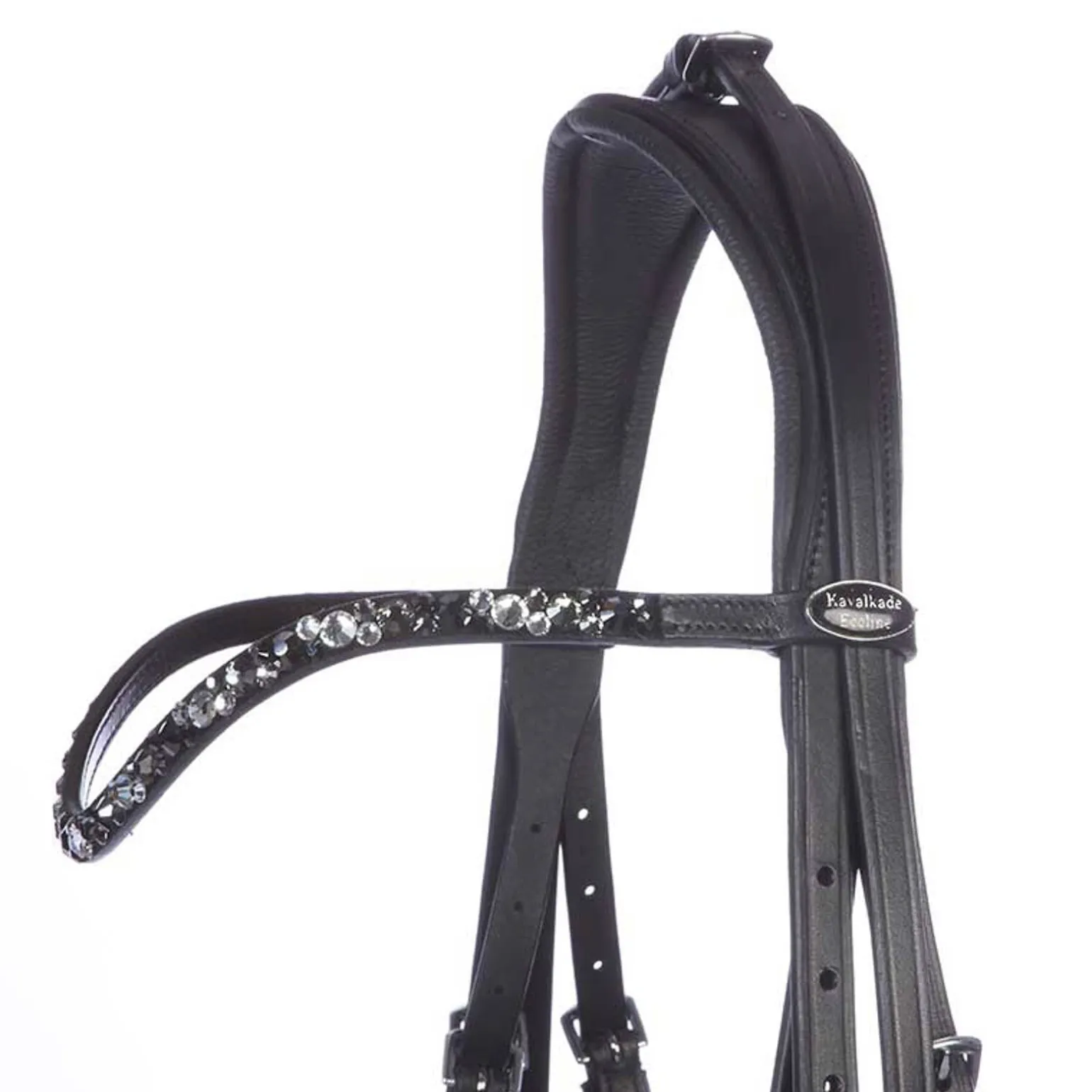 Et ekstremt praktisk kominasjonshodelag.Med elegant panneåbnd med hvite, grå og svarte steiner.Anatomisk formet engelsk nesereim med avtakbar flash-reim.Valgfrie, avtakbare kinnstykker så det kan kombineres til et kandarhodelag.Kombinasjonshodelaget kommer også med to par tøyler.En er normale kandartøyler uten stoppere, og de andre er tynne, gummidekte tøyler.