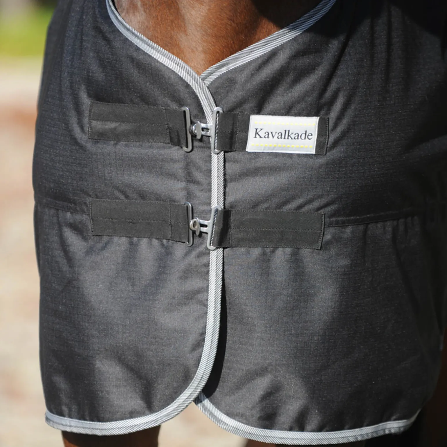 Dette nye utedekkenet gir hesten mye bevegelsesfrihet og komfort både høst og vinter.Det er laget av pustende, vanntett (3000 mm vannsøyle), og slitesterkt (600 denier ripstop) materiale.Uten ryggsøm.Dobbel borrelåslukking foran på brystet, elastiske innlegg på kryssgjordene, dyp halesnor og haleflapp.50 gram fyll.