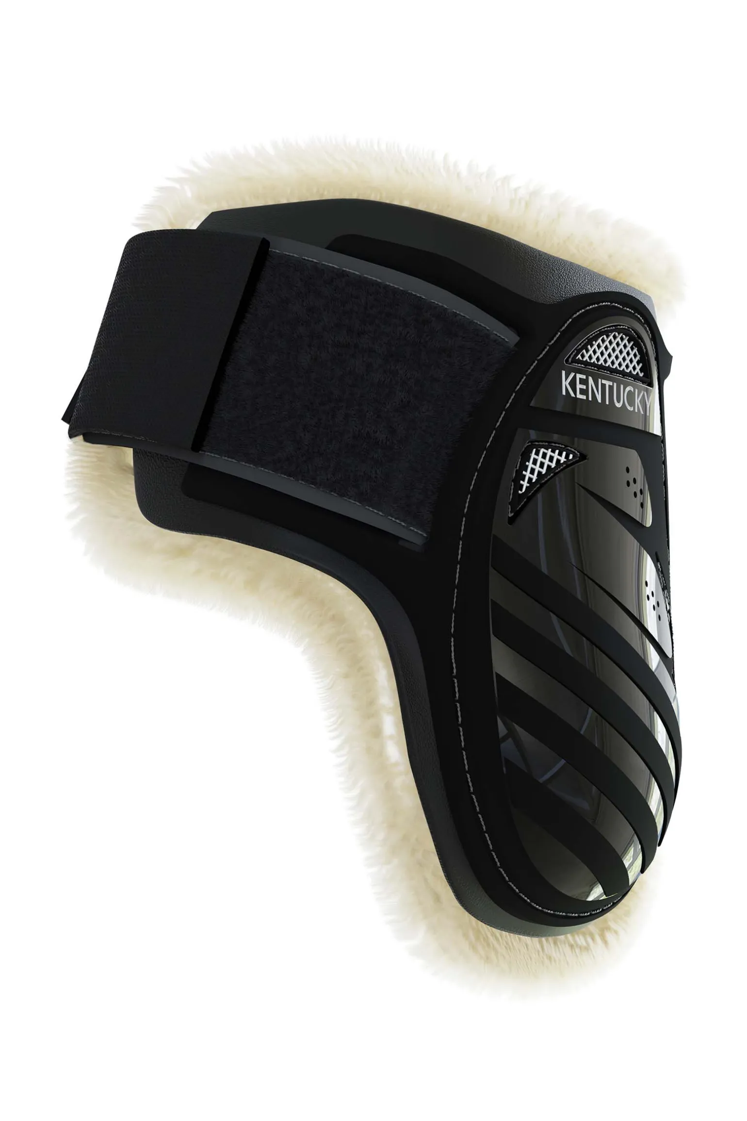 Vegans bakbeinbelegg til unghest er laget av et sterkt skall i TPU med flere ventilasjonshull og en større triangel med mesh for ventilasjon.Den innvendige delen av belegget er forsterket med et ekstra lag TPU for å motstå høy slitasjeNår bakbeina beveger seg.Bakbeinsbelegg til unghester i følge FEI-reglene godkjent for bruk på unghester i sprangklasser.Stoff og materialeVegan senebelegg til unghester er laget av Kentuckys svært pustende, veganske saueskinn som er brukt i mange år på deres populære transportgrime, stevnedekken og gjorder.De har et robust utvendig skall laget av lett, men samtidig sterk TPU.Borrelåsen med ekstra høy kvalitet gir maksimalt feste rundt hestebeina slik at belegget ikke vrir seg eller sklir ned.Form og størrelseTakket være det anatomisk formede designet passer belegget fint rundt hestens bein for å gi maksimal komfort og beskyttelse.Dette gjør at hesten får maksimal bevegelsesfrihet og kan hoppe bedre.