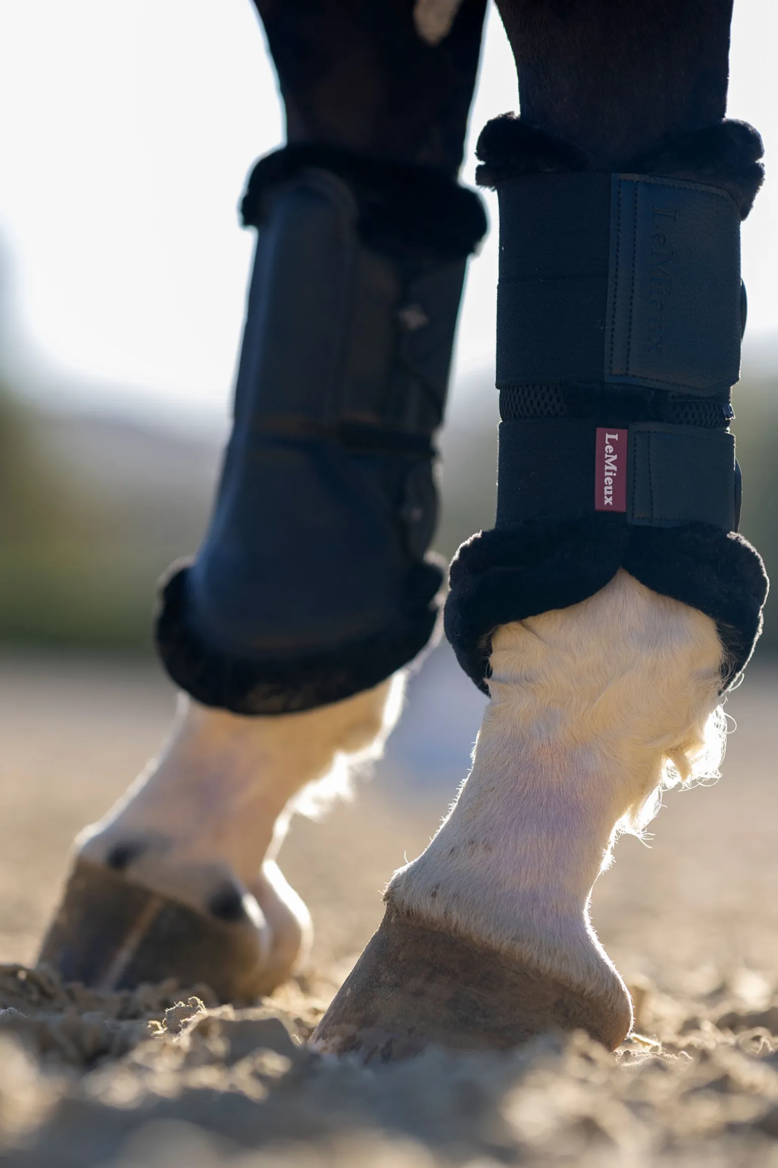 Den beste kombinasjonen av komfort og pusteevne. En ideell løsning for hester med sensitiv hud eller når helfôrede fleecestøvler viser seg for mye.Lett, perforert 3D-nettverk oppmuntrer til luftstrøm inne i styksokker og holder bena kjølige. Kantet med supermyk fleece for å forhindre gnidning og maksimere komforten.Den tøffe, slitesterke streikeputen i PU-skinn gir beskyttelse mot børsting og støt, og den nyeste lavprofils borrelåslukkingen forhindrer oppsamling av materiale på rideunderlaget. Le Mieux-signaturstroppen med dobbel topp gir rask og enkel festing. Sterke, elastiske stropper holder støvlene på plass uten å stramme for mye og er ferdig med merkede gummiavtrekkere for praktisk fjerning.Egnet for bruk på for- og bakbein. Selges i par.