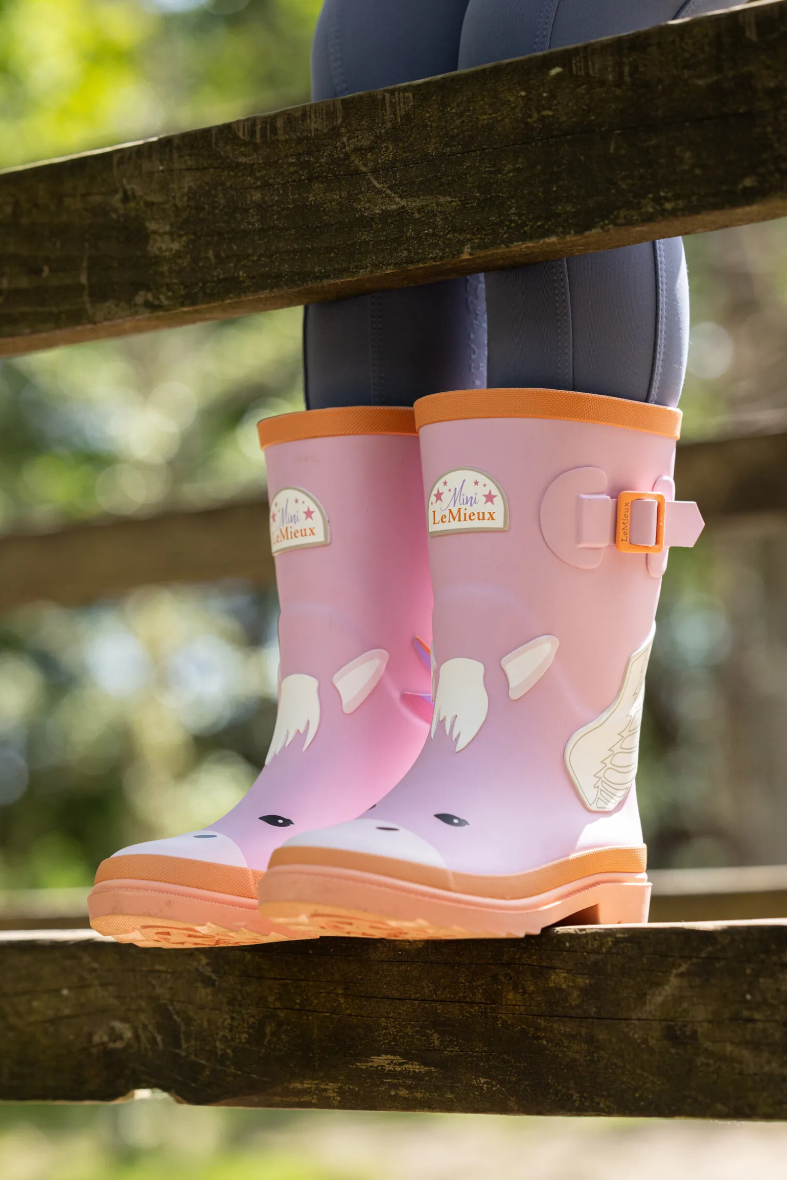 Regnfulle dager trenger ikke stoppe leken – særlig ikke når du bruker LeMieux Puddle Pals gummistøvler! Laget av en slitesterk, naturlig gummiblanding. De forhindrer vann fra å komme inn, selv når man spruter eller vasser gjennom de dypeste gjørmepyttene. Sålen med hestesko og stjerne-form gir grep og forhindrer de små å skli når de leker, mens bomullsinnsiden med trykk av morsomme hestekarakterer gjør disse gummistøvlene perfekt for å gå ut med i all slags vær. For ekstra komfort og støtte er det en avtakbar innersokk – perfekt for lange lekedager på beina!