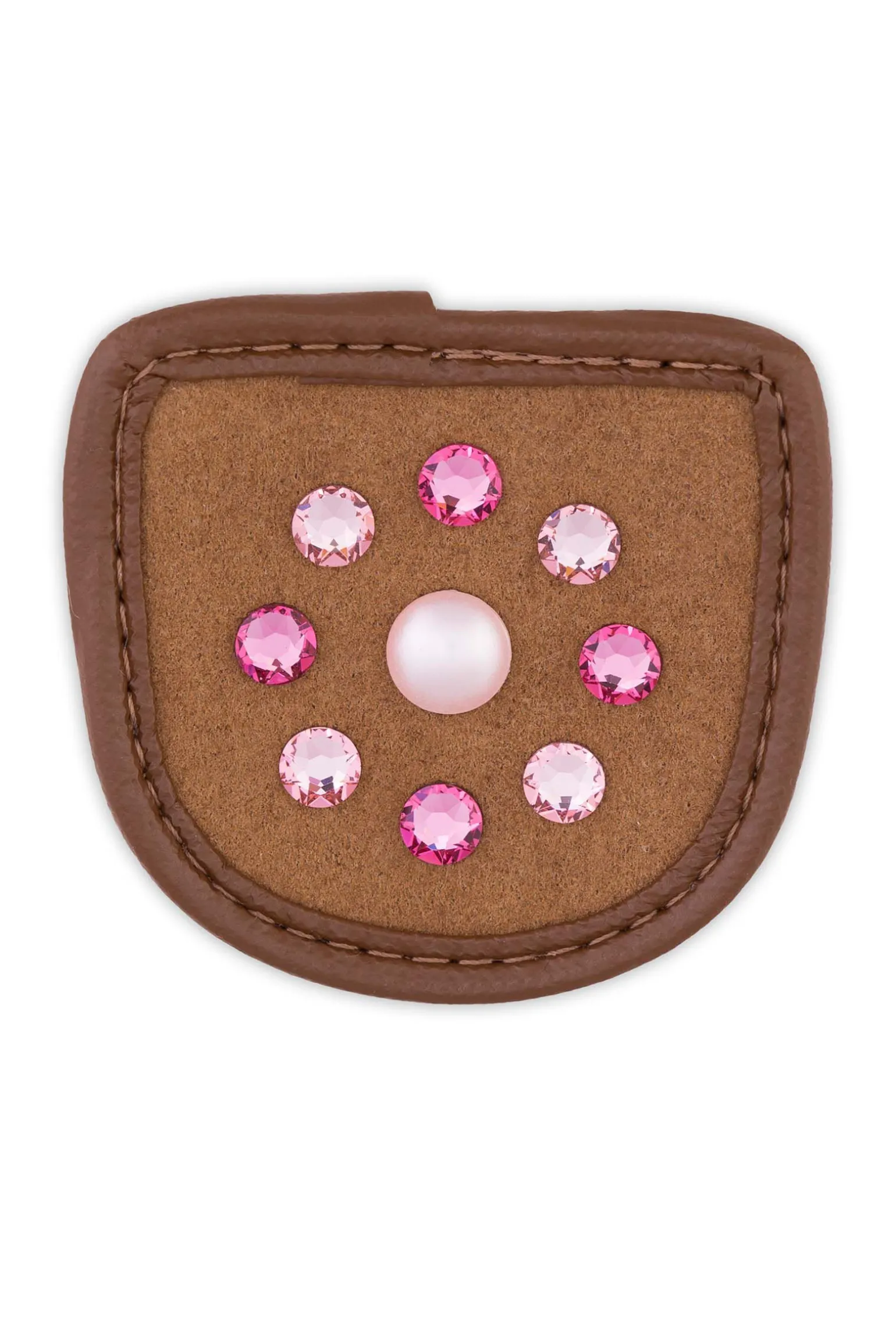 Laquer Rose – se opp, alle rosa-fans!Dette designet med store, rosa krystaller er perfekt til alle rosa antrekk både til deg og til hesten.Høydepunktet med dette designet er virkelig den rosa perlen.Vær en prinsesse!Dekorasjonen passer alle MagicTack hansker og kommer i par uten hansker.