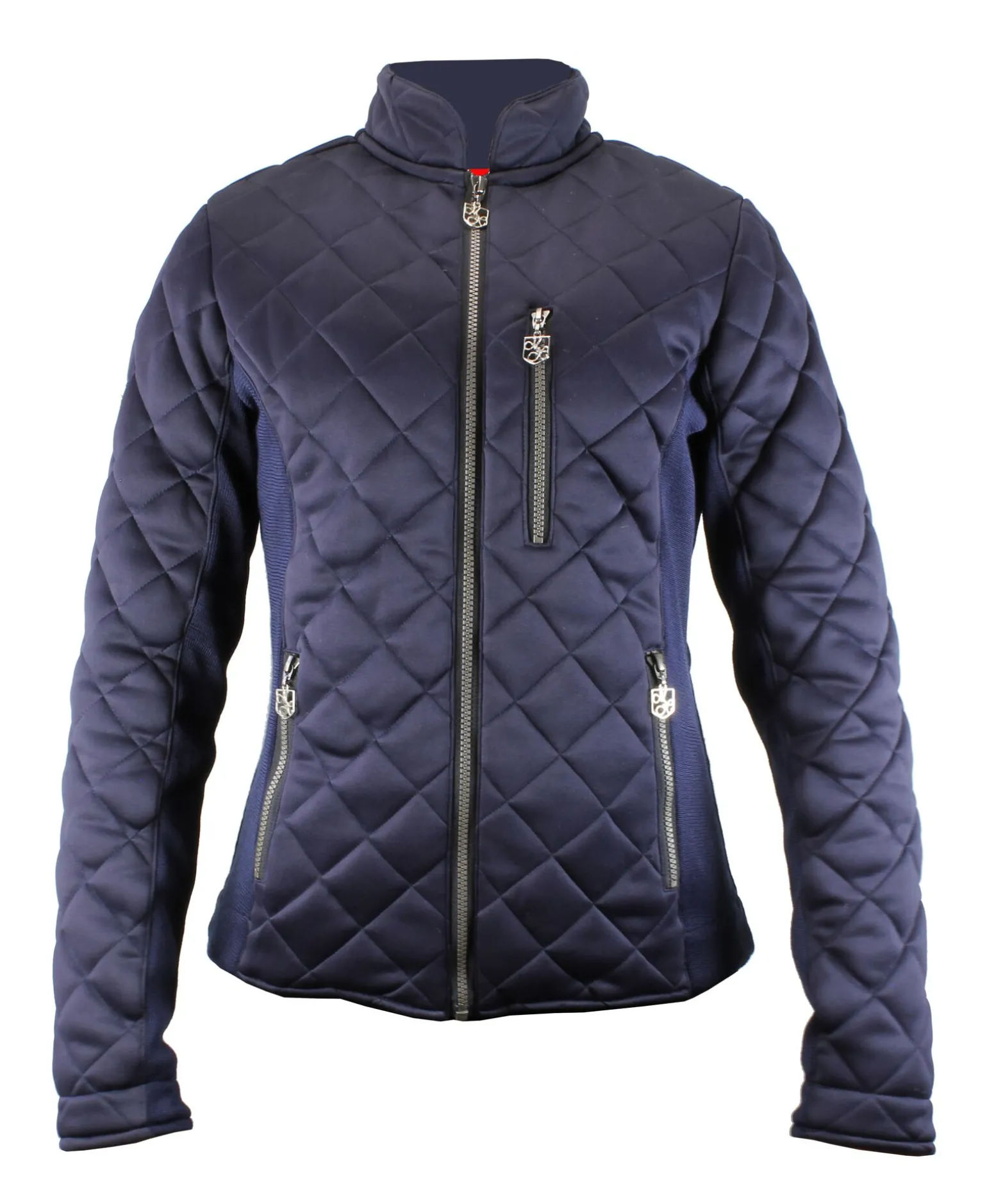 Smart, sporty og praktisk jakke i en blanding av vatterte og strikke-paneler ned siden og under ermene.