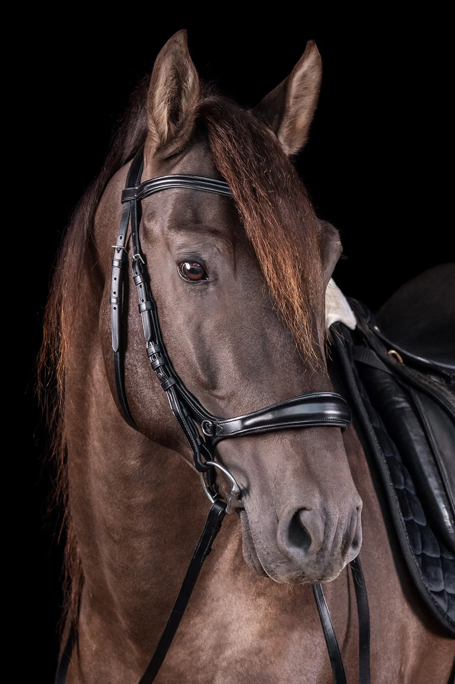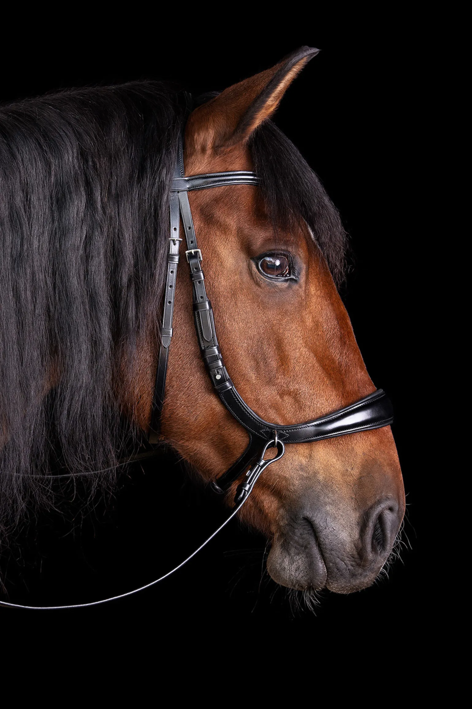 Innovativt 3-i-1 hodelag: De separat tilgjengelige kinnstykkene (med spenne eller hodelagskrok) gjør det mulig å bruke hodelaget ikke bare uten bitt, men også med bitt. Det er også mulig å bruke hodelaget med to par tøyler (semi-hodelag).