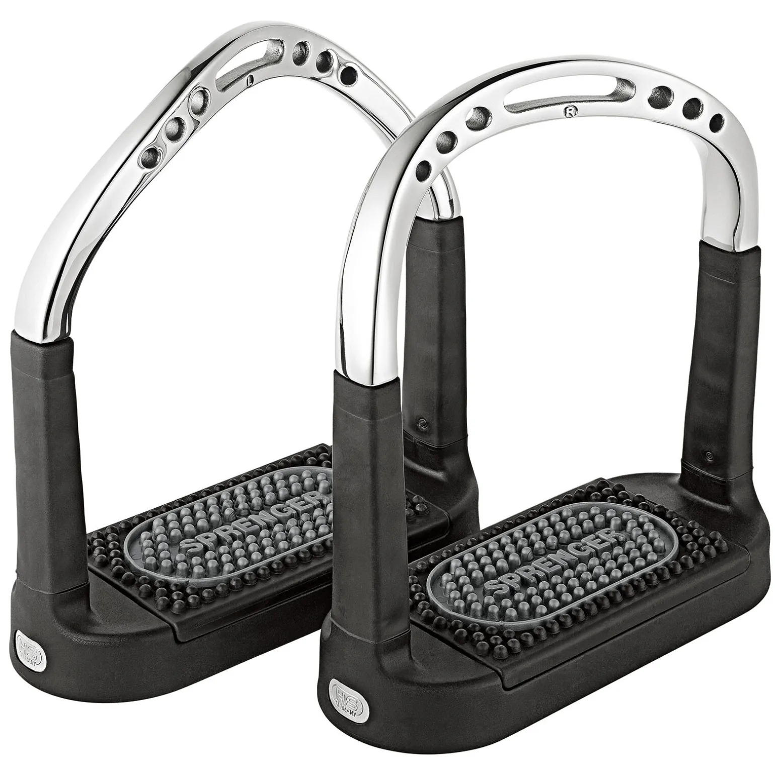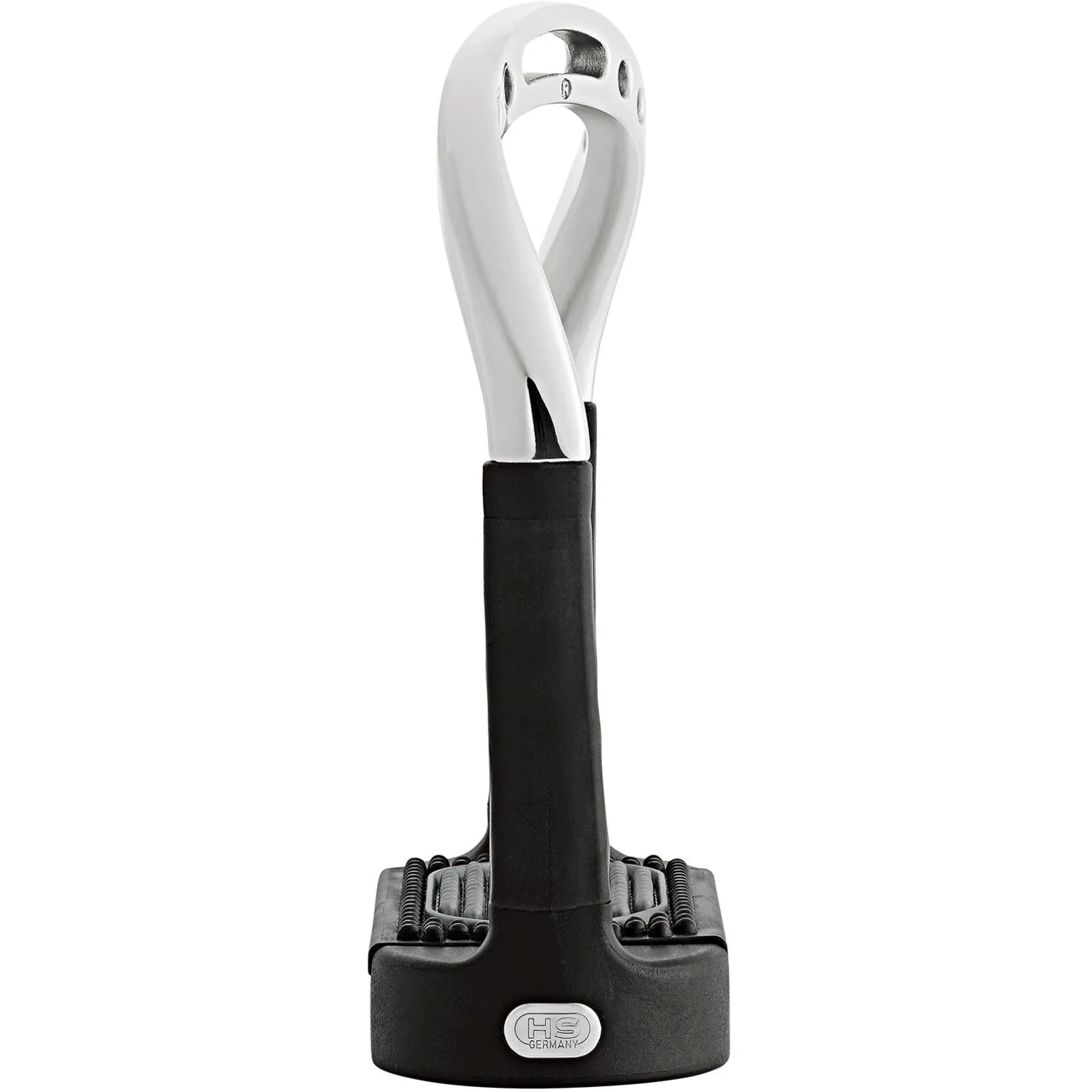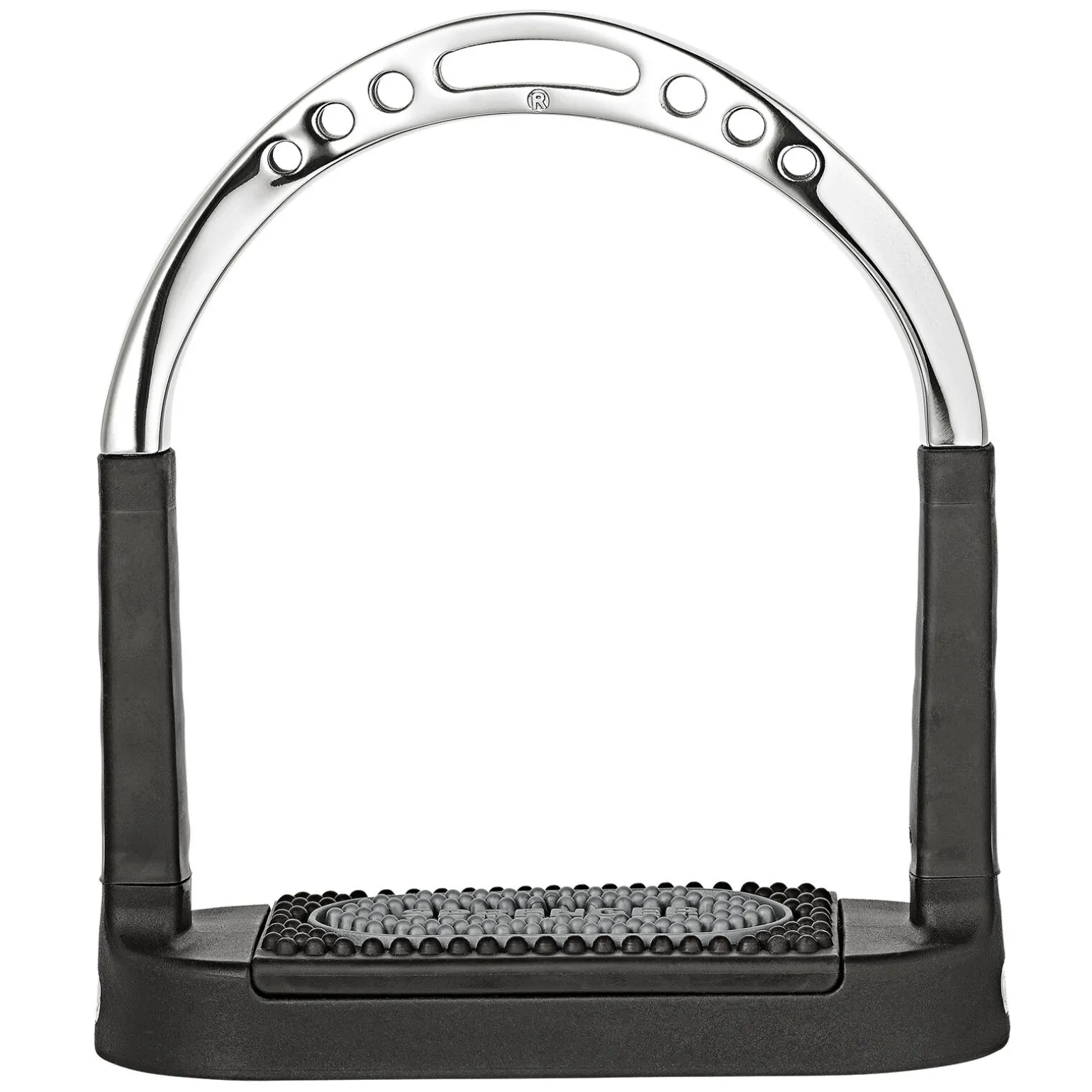 Den siste generasjonen av ledd-stigbøyler er perfekt balansert for en optimal og sikker lår- og fotstilling. De har en støtdempende og skånsom effekt på ledd, leddbånd og menisk. Det gjør det også lettere å frigjøre foten i tilfelle fall. Det moderne designet gjør at Flexcite-stigbøylen i elegant sølv/svart er toppmodellen av ledd-stigbøyler.Flexcite stigbøylen er laget av rustfritt stål av høy kvalitet og er delvis dekket med plast og slitesterk gummi. For korrekt feste til salen er stigbøylene merket med en L for venstre og en R for høyre i det øverste området på den enkelte stigbøyle.