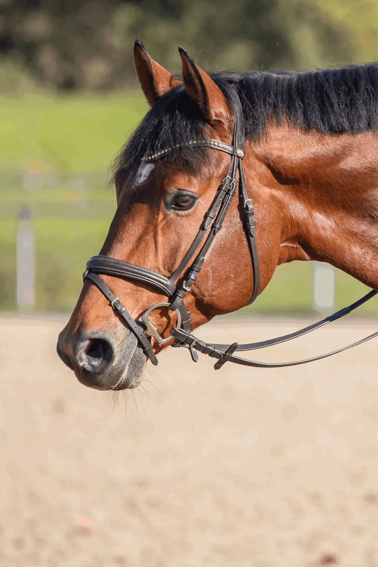 - Ligger stødig i hestens munn, skånsom mot munnvikene, støtter sidevirkende tøylehjelper