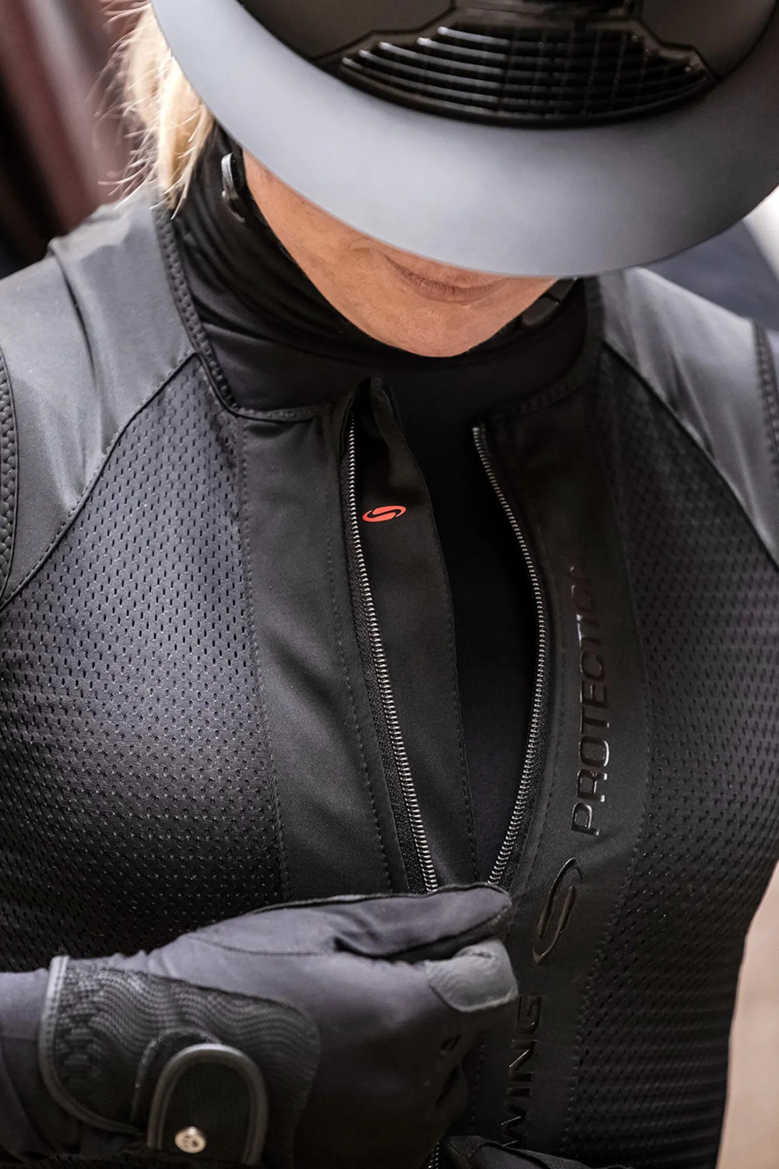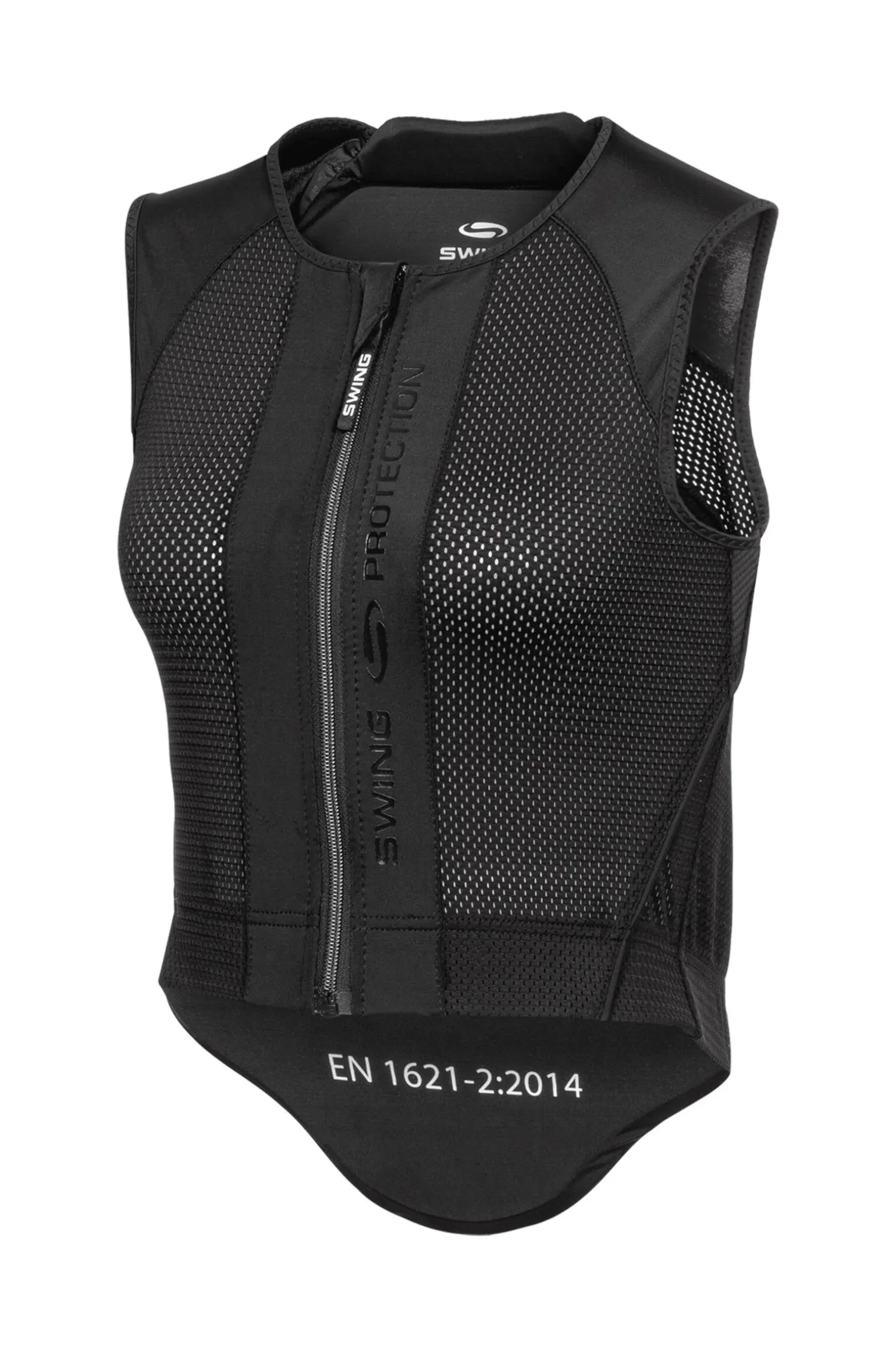 Utviklet i samsvar med gjeldende sikkerhetsstandard EN 1621-2:2014, Level 2, gir Swing P24 Flex enestående beskyttelse under ridning. Dets 5-lags Swing-Flex beskyttelsespanel i ryggområdet er imponerende slankt med bare 18 mm tykkelse, som gir maksimal bevegelsesfrihet uten å kompromittere sikkerheten. Den forbedrede ergonomiske utformingen og den automatiske breddejusteringen med Flex Jersey sikrer en perfekt passform som tilpasser seg optimalt til kroppen. Beskytterens elastiske, lette og pustende stoff garanterer maksimal komfort, slik at ryttere kan fokusere fullt ut på ytelsen sin. Frontglidelåsen med Swing Safety Puller muliggjør enkel åpning og lukking, selv i nødsituasjoner eller når man bruker hansker. Den høykvalitets CMZ-glidelåsen sørger for enkel på- og avkledning. For ekstra funksjonalitet er beskytteren i ryggområdet avtagbar, noe som gjør rengjøring og vedlikehold enklere. Silikonbåndet ved kanten forhindrer effektivt beskytteren i å gli opp under ridning og holder den på plass. Swing Ryggbeskytter P24 Flex er det perfekte valget for ryttere som setter pris på maksimal beskyttelse og uovertruffen komfort. Opplev friheten ved ridning med en beskytter som harmonisk kombinerer sikkerhet og fleksibilitet. Swing ryggbeskyttere beskytter kroppen din uten å redusere gleden ved ridning. Bruken av høyteknologiske materialer sikrer maksimal bevegelsesfrihet. Merk at for terreng- og feltrittprøver kreves en vest sertifisert til EN 13158 Level 3 i henhold til LPO-regelverket.