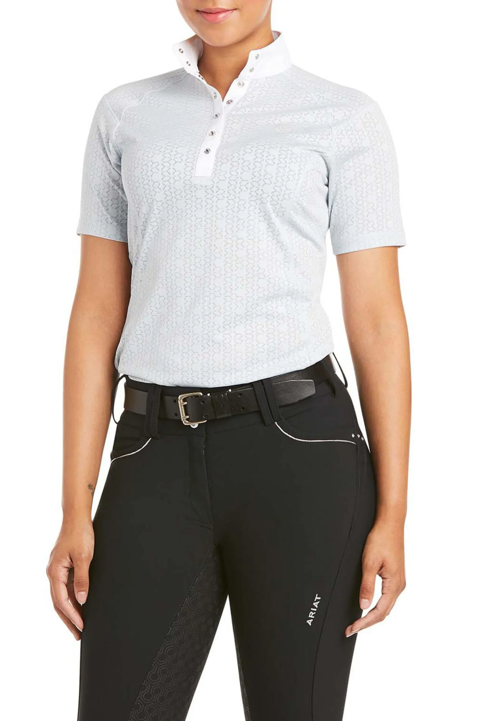 Ferdig pyntet og klar til dyst. Showstopper holder deg kjølig, tørr og beskyttet mot solen – samtidig har det egenskapen med å holde uønsket odør borte.Performance-stoff med jacquard-konstruksjon – mønsteret er vevd inn i stoffet for en nydelig effekt.Pyntesteinsknapper og akkurat den riktige mengden med glans.