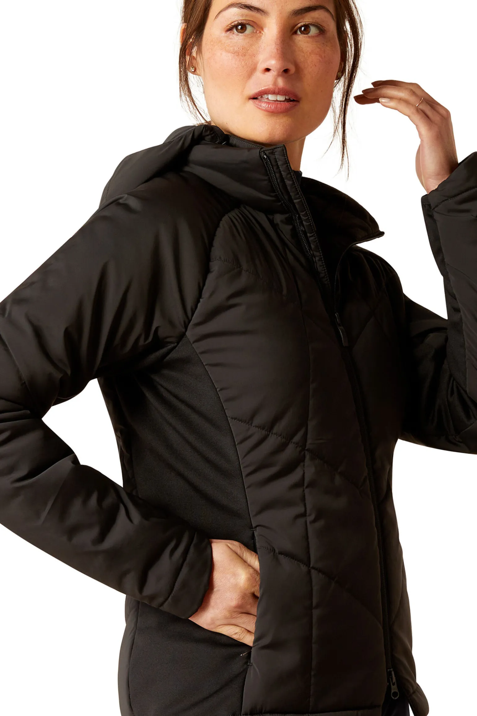 - AriatTEK® er designet for optimal komfort i all slags vær PFC-fri EcoDry™øtende konstruksjon med pustende design PrimaLoft® Black Insulation Eco for bærekraftig, lett varme Avtakbar hette Toveis glidelås