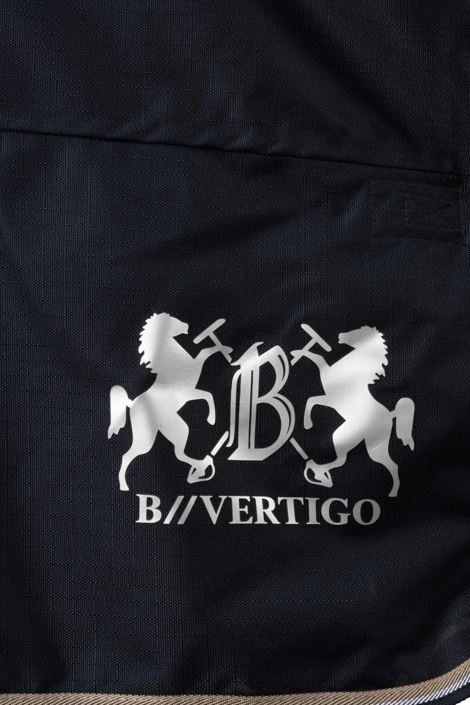 Elegant B Vertigo i dyp blåfarge og i klassisk stil. Dette medium tykke dekkenet har en nydelig framtoning, samtidig som det har alle detaljer og kvaliteter du forventer fra denne toppmodellen. Den avtakbare halsen gir en ekstra fordel på dette beskyttende dekkenet, og den kan festes på for ekstra varme når været forandrer seg. Se for deg at hesten din er ute og hygger seg mens uvær bygger seg opp i bakgrunnen. Ta på halsen og hesten kan fortsette å være komfortabel ute mens vær og vind herjer.