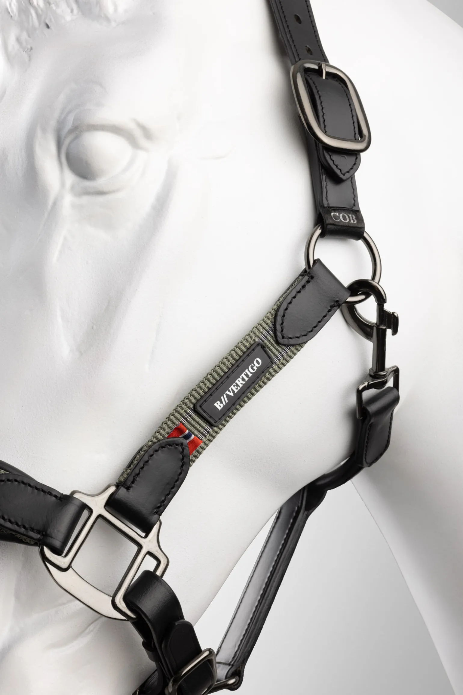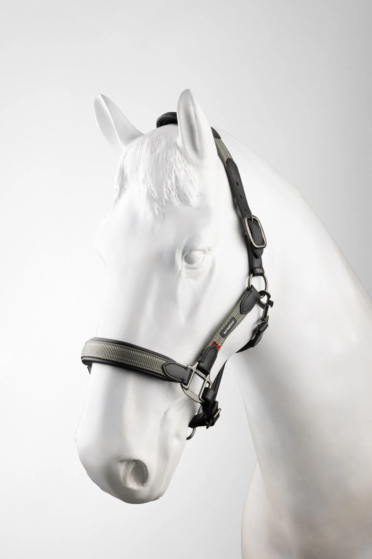 - Gewebet stropp med Lurex-stripe på kinn, nese og nakke