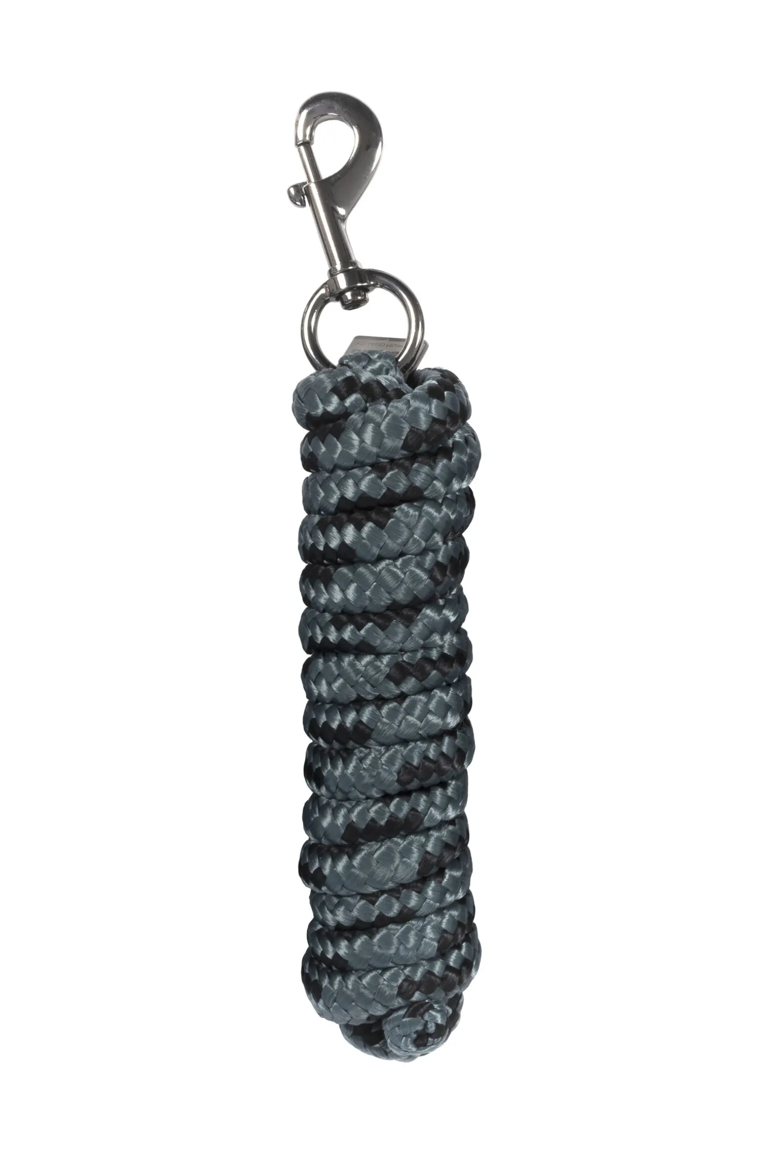 Blytau med karabinkrok.Blytau med karabinkrok i gunmetall holdt i sølv.Dekorativ Cavallo metallplate i nytt design.Tofarget.Len-gbth ca.2,20 meter.
