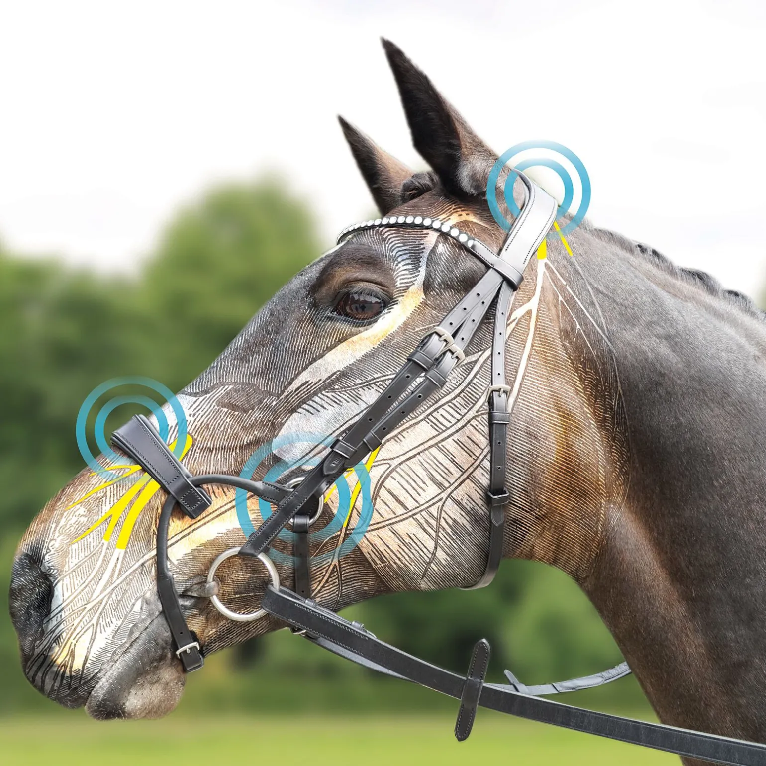 - Dobbel polstring over nakkeområdet minimerer press, og rundt ørene er polstringen formet slik at hesten får maksimal frihet og komfort