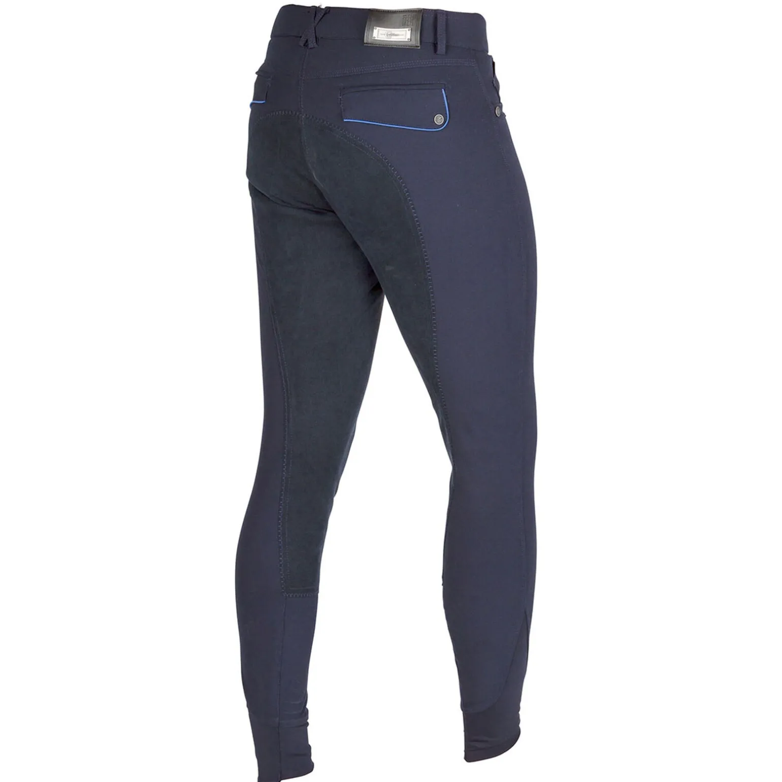 Tiltalende ridebukser laget av mikrofiber og bomull for perfekt komfort. Kontrastsømmer og kantbånd på de falske baklommene markerer alle de fantastiske funksjoner. Som med alle høykvalitets ridebukser er denne modellen naturligvis også helforsterket med strekkbart tekstillær. Benmansjetten med «ElastoSoft»-materiale sørger for en perfekt sits, og forebygger irriterende trykkpunkter.