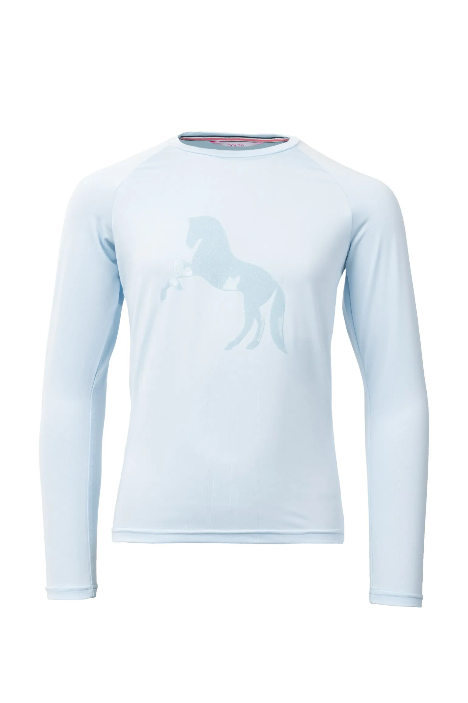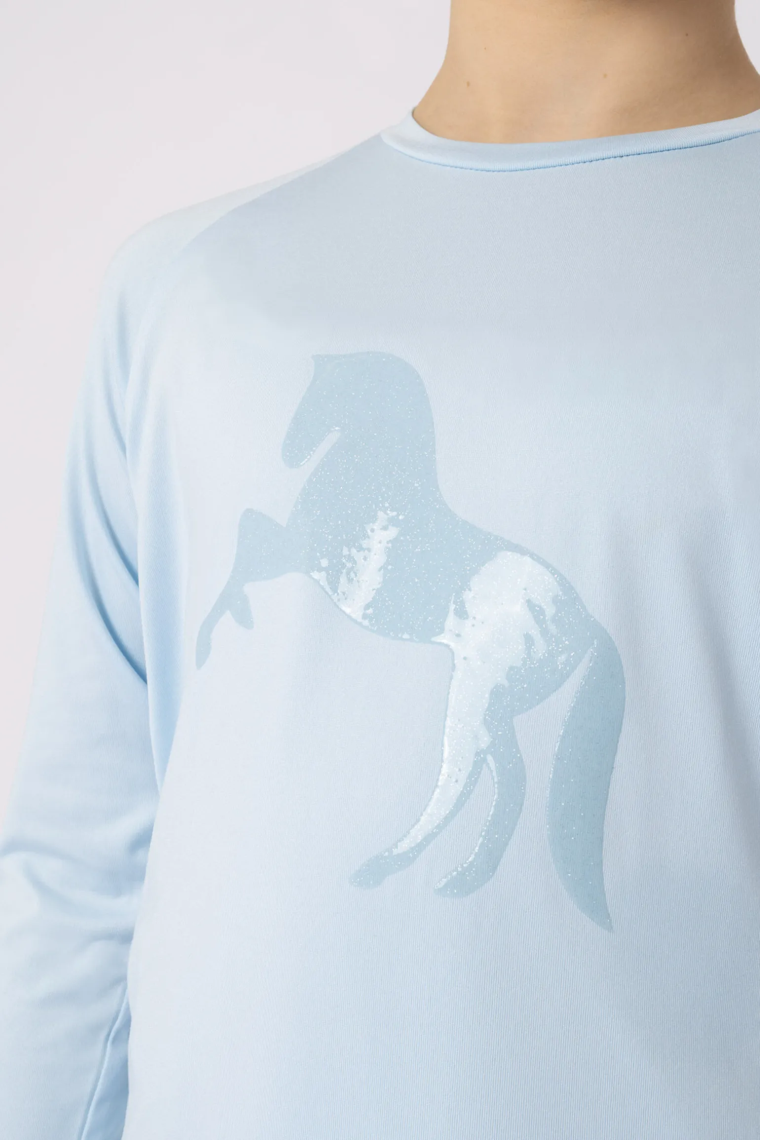 - Glitrende silikontrykk. Funksjonelt stoff. Hurtigtørkende. Pustende. Crew-neck. Stripete rundt halsen. Noe lengre kant bak