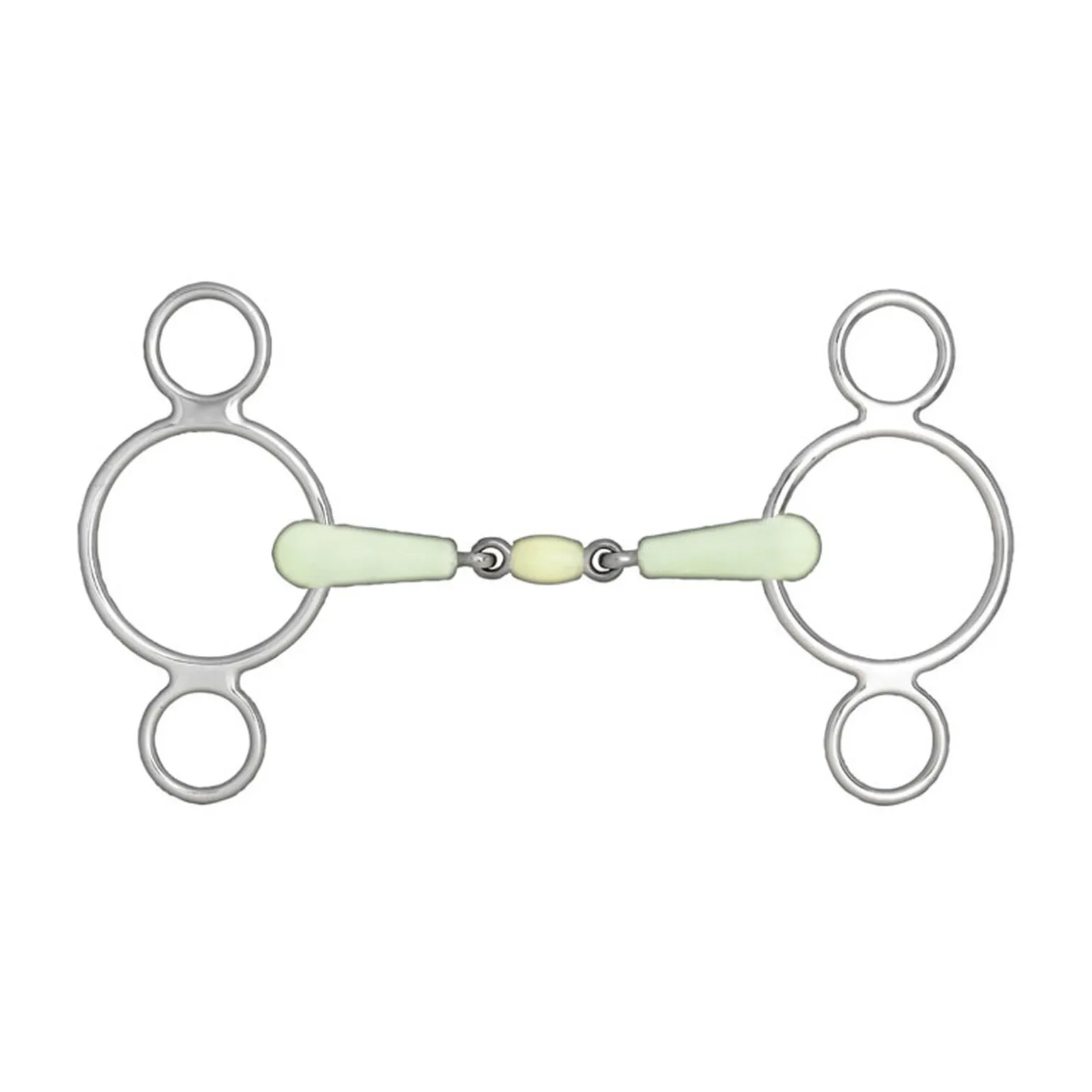 Et tredelt pessoabitt med eplesmak som øker aksepten av bittet både blant unghester og eldre hester. Dette populære bittet som har en rustfri stålkjerne og ringer, og giftfri, høyteknologisk plast, gjør det mykt, fleksibelt, mildt og komfortabelt for hesten din. Dette vil ikke påvirke hestens gane, og oppmuntrer den til å slappe av. Det tredelte pessoabittet har et eggeformet ledd.
