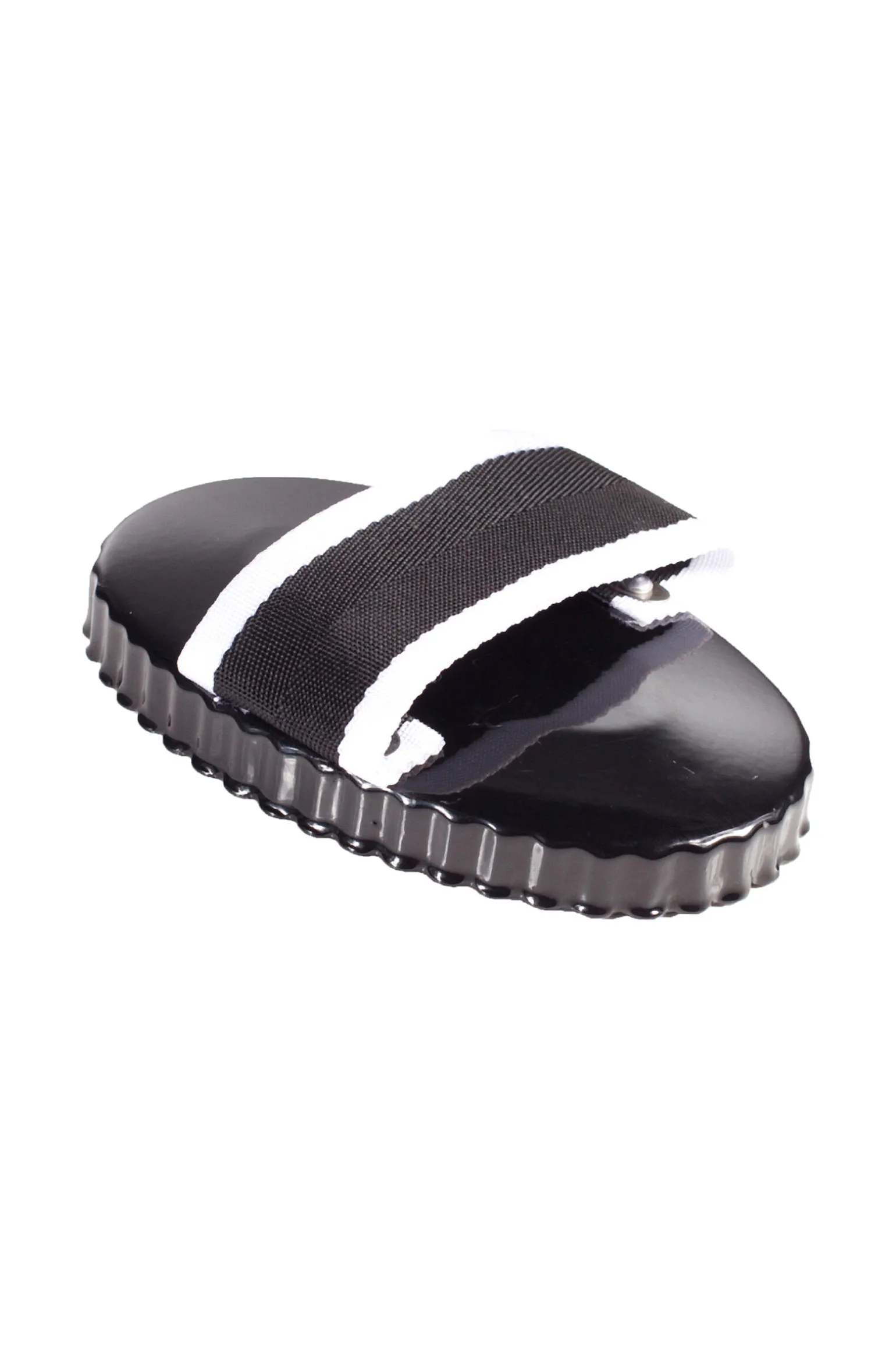 Ovalformet røytebørste i metall. Vevd håndløkke.