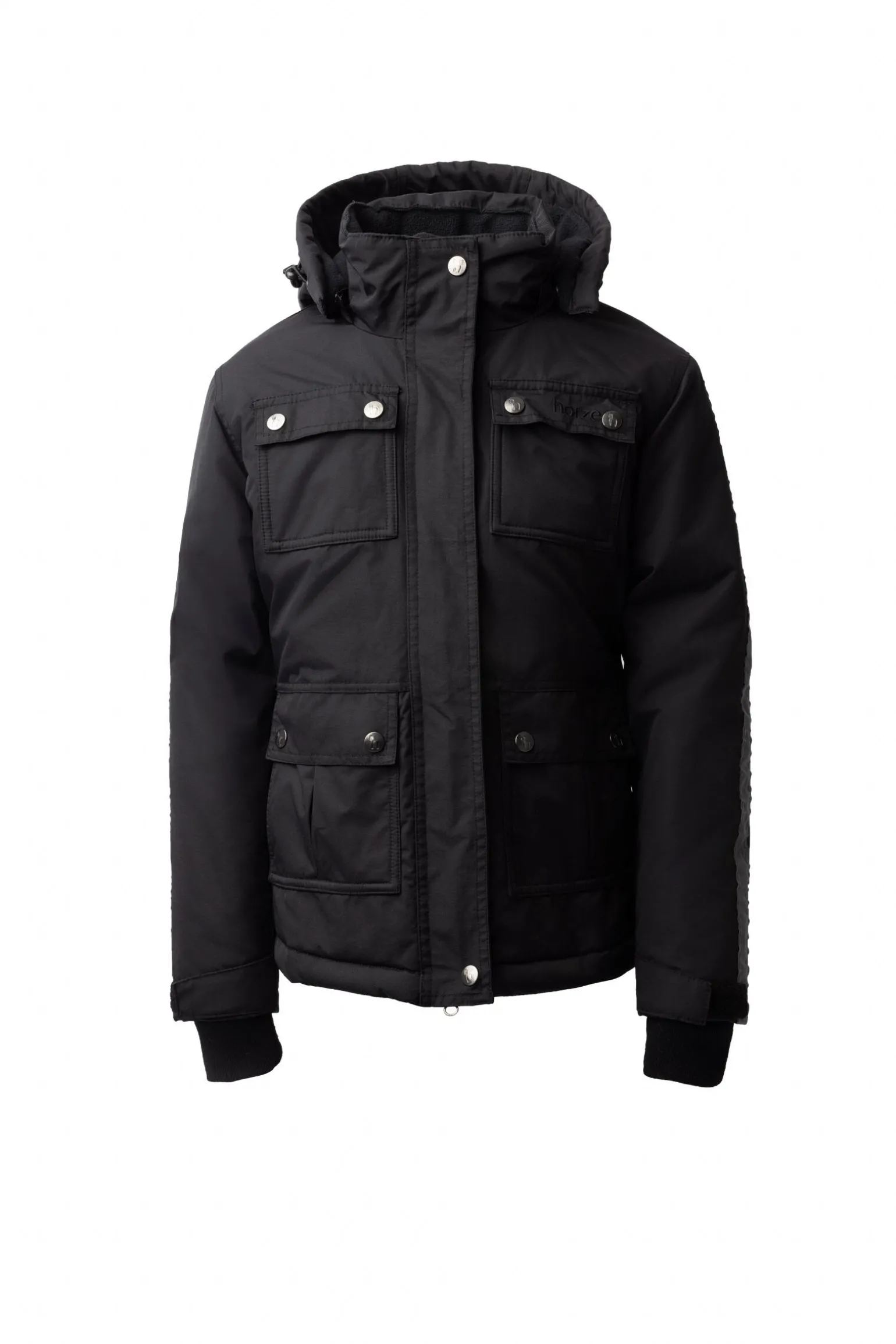 Denne varme vinter-ridejakken kommer med en avtakbar hette, og beskytter den lille rytteren mot regn og snø.Reflekterende teip i full lengde på begge armer gir sikkerhet i mørket.Den justerbare snoren langs hetten og livet gir barnet den perfekte passform.Glidelås i full lengde med knapper holder kulden ute.Flere lommer holder eiendelene trygge under ridning.Kombiner dem med WinterRider bukser (#33192) for et varmt og behagelig sett.