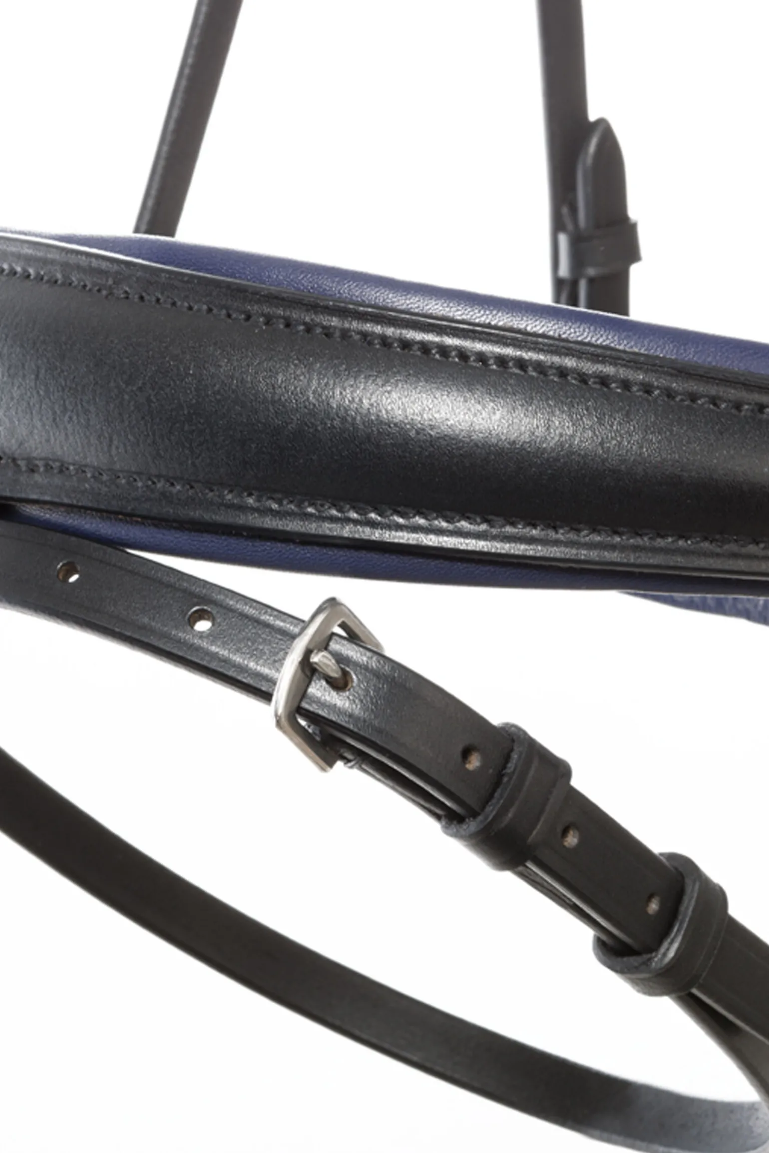 Det moteriktige hodelaget «Ocean» KavalSH4 med sin mørkeblå kantede nesereim og glitrende blå rhinestener på pannereimen er laget av høykvalitets lær og kan justeres på begge sider for optimal passform. Nakkestykket er anatomisk formet og ekstra bredt for å gi mer ørefrihet. Nesereimen er mykt polstret og anatomisk skåret. Gummibelagte tøyler med stoppere (16 mm). Matchende sporeremmer. KavalSH4 窶»KavalSH4″ er hodelag der nesereimen kan fjernes. Det spesielle med dette er at festet for nesereimen ikke er synlig, i motsetning til konvensjonelle hodelag med avtagbar nesereim.