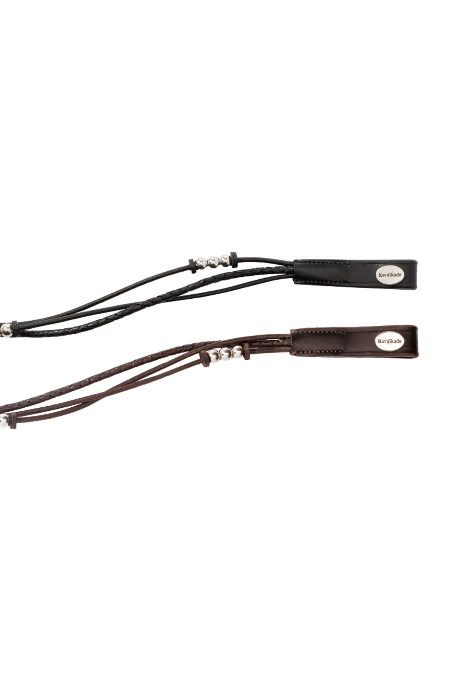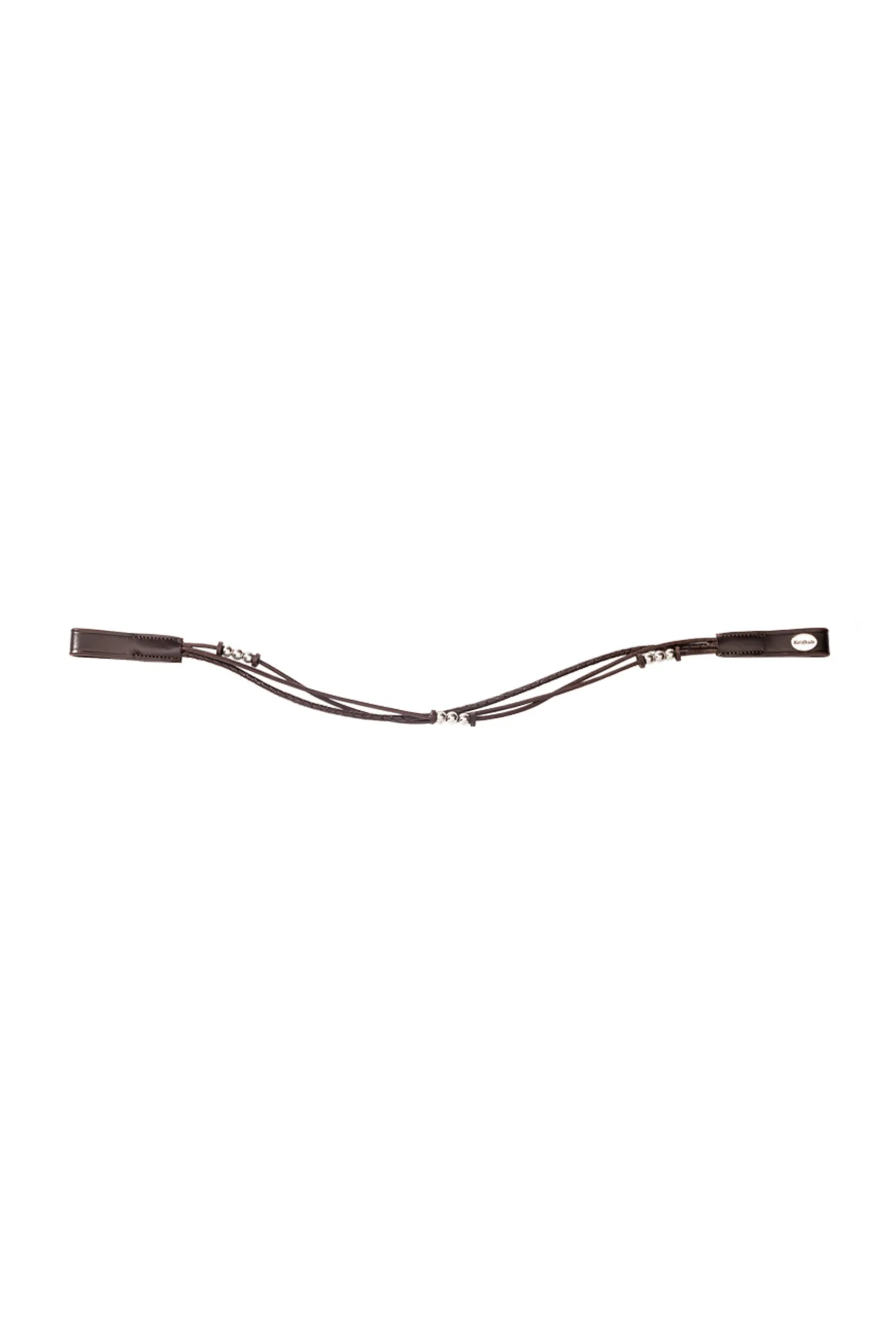 Et blikkfang på hestens hode – det unike 窶廱oy窶åndet i armbåndsutseende består av 3 lærstrenger dekorert med sølvfargede elementer.