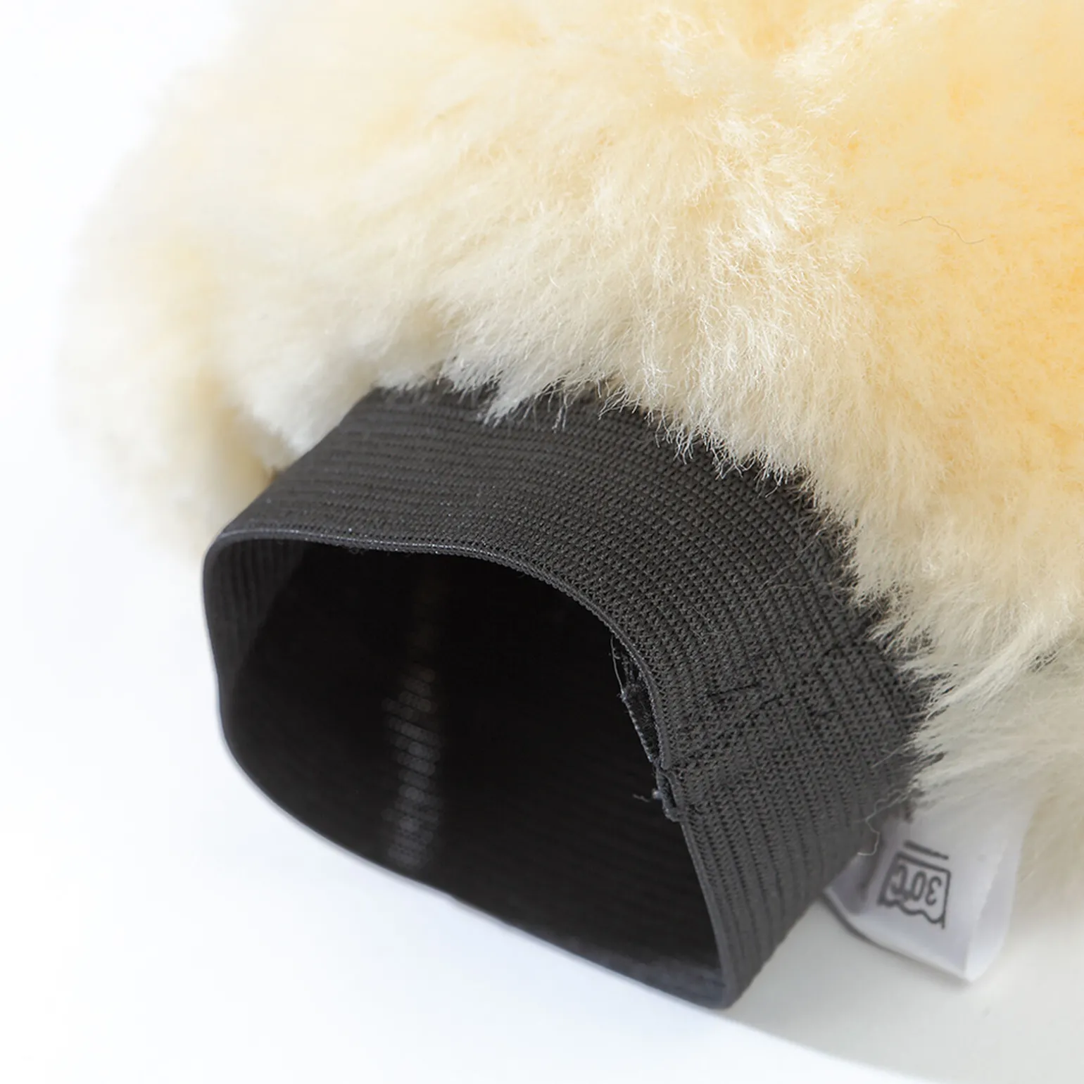 Stellevott med medisinsk saueskinn og elastisk kant rundt håndleddet. Gir ekstra glans i pelsen.