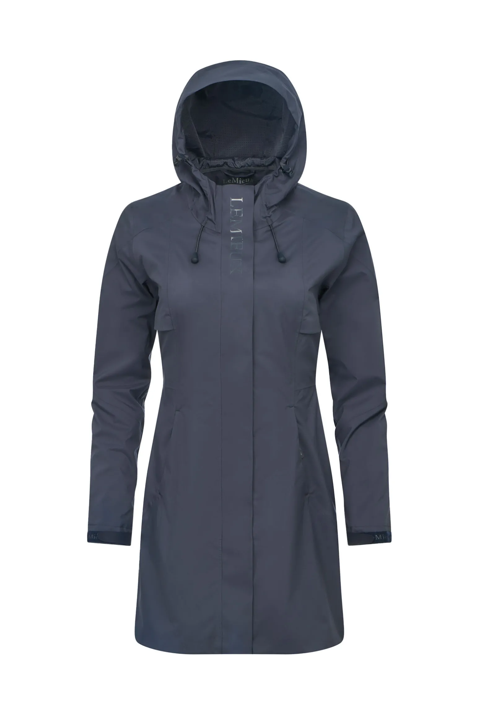 LeMieux Grace lang regnjakke for dame er en lett, pustende og vanntett jakke designet for optimal beskyttelse mot vær og vind. Den slitesterke, vanntette belegningen og de teipede sømmene hindrer effektivt regn i å trenge inn. Vanntette glidelåslommer og en praktisk toveis frontglidelås gir funksjonalitet og komfort. Det helfôrede designet med glidelåsventil bak gir full bevegelsesfrihet under ridning. En fast hette gir ekstra beskyttelse mot elementene, noe som gjør denne jakken til et perfekt valg både for stallbruk og hverdagsbruk.