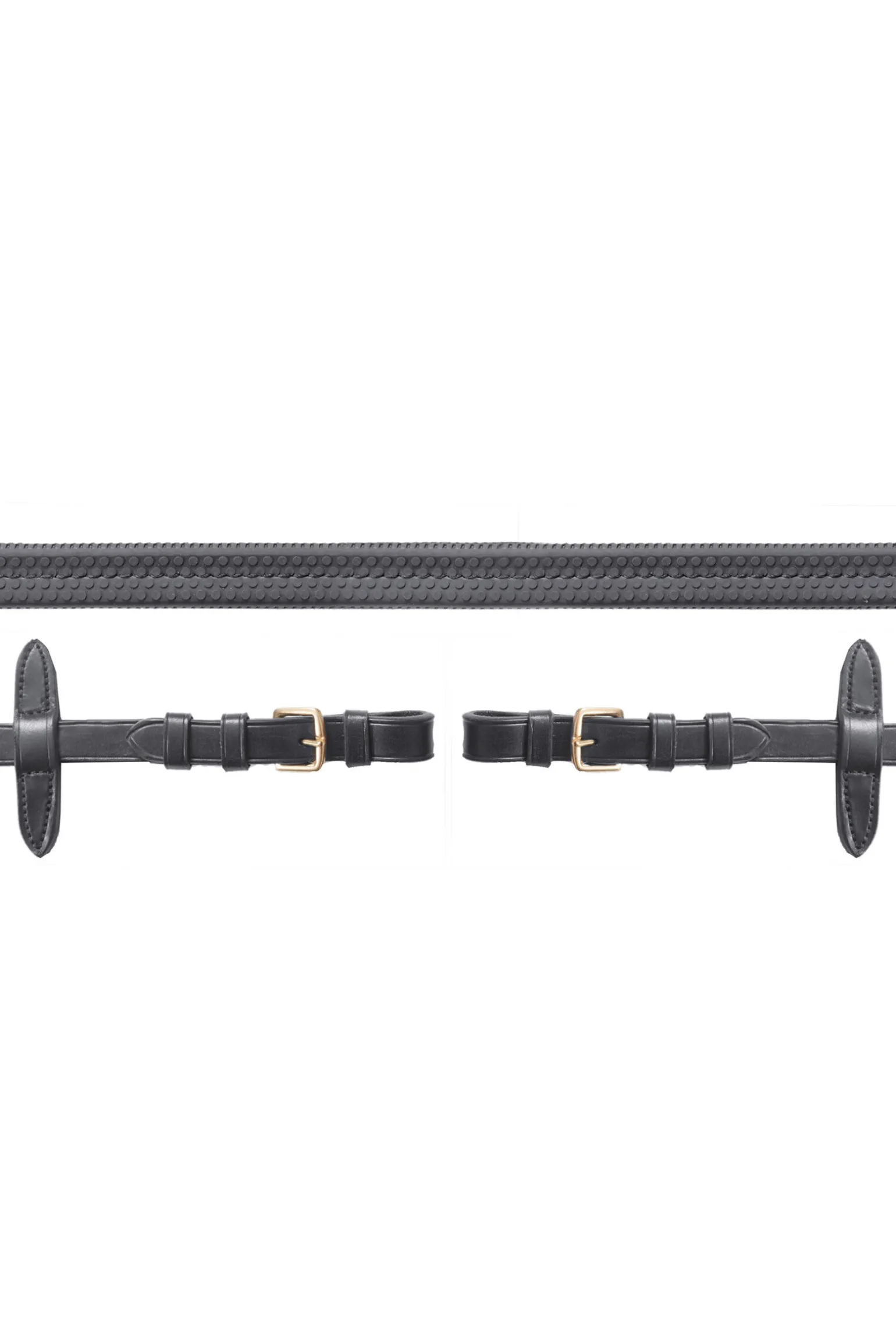 Enkle gummitøyler med spenne og middels bredde på 17 mm. Tøylene ligger komfortabelt i hånden og leveres med martingalstoppere.