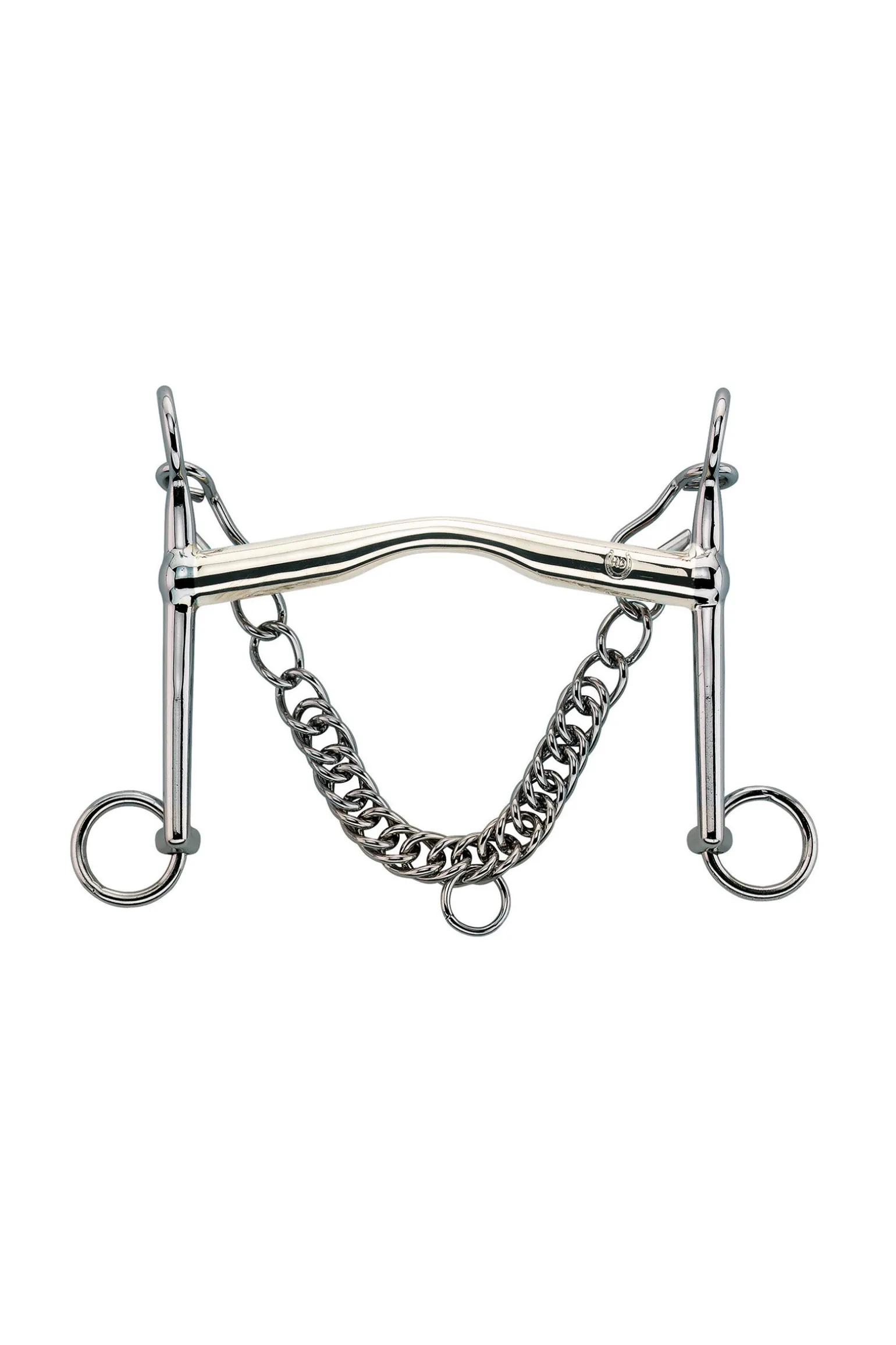 Dette unike kandarbittet med skråstilt munnstykke og en glatt, avrundet port, er vinklet fremover og gir en god trykkfordeling på tungen.Bittet drar fordel av tungens ekstreme følsomhet og sikrer presise instruksjoner. Velegnet til hester som opplever det ubehagelig med trykk mot tungen.Utmerket som en mild introduksjon til kandarbittet. Det skrå munnstykket opmuntrer til harmoni mellom rytters hånd og hestens munn, og gir en avslappet, sikker kontakt med bittet.