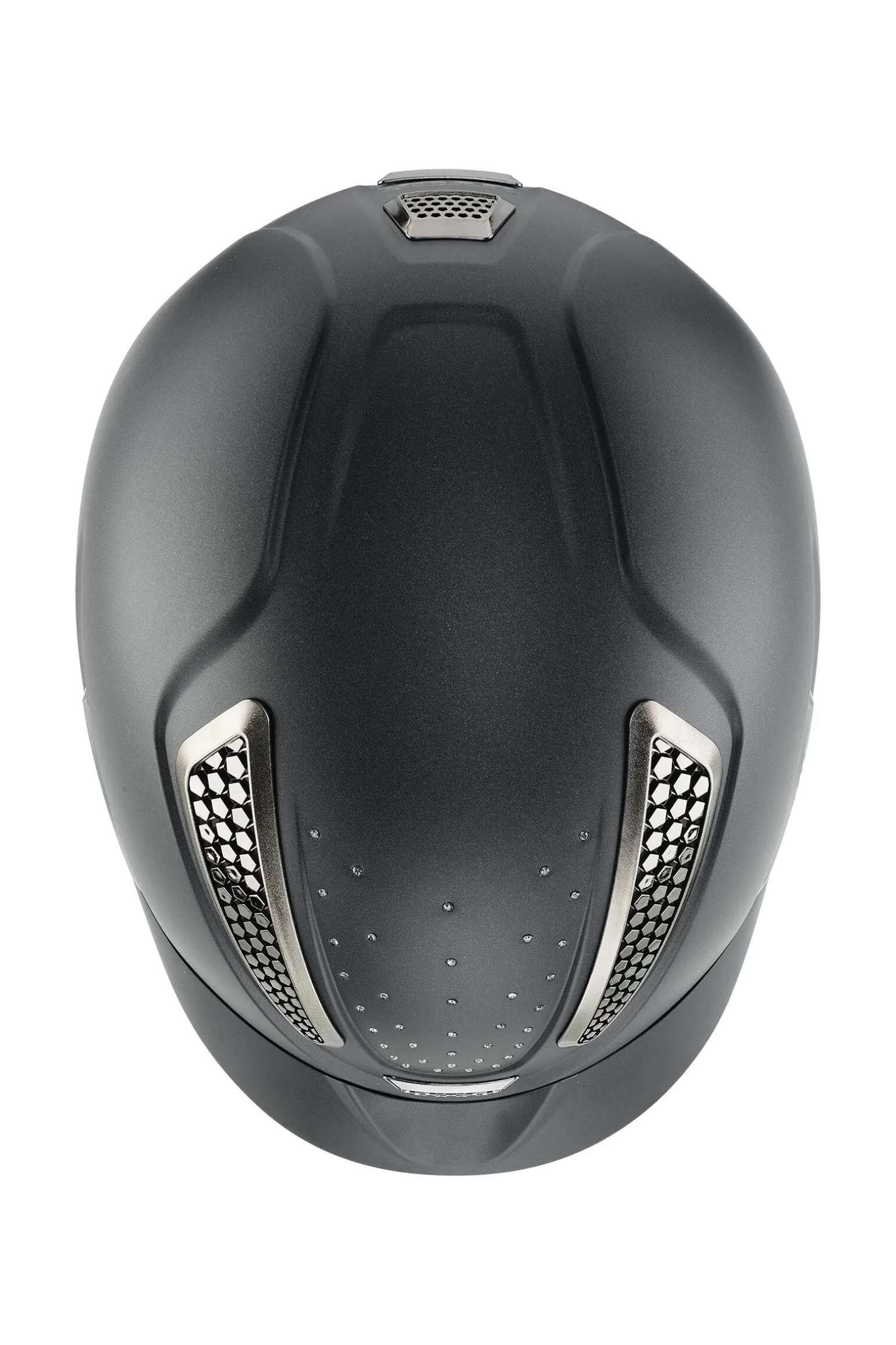 Premium stil møter topp ytelse. Uvex Perfexxion III Grace er et must-have for alle som finner understatement alt for kjedelig når de er i salen. For ditt fantastiske inntog er 38 originale Swarovski®-krystaller blitt satt inn for hånd, og de interagerer med de forkromede ventilasjonsgitter, luksuriøse remdeksler og kunstlærs piping. Dette gjør hjelmen til en eksklusiv blikkfang. For økt sikkerhet har Uvex Perfexxion III Grace en forlenget ytterskall bak på hodet. Det dynamiske ventilasjonssystemet sikrer optimal luftstrøm og garanterer et perfekt klima inne i hjelmen til enhver tid. Komfortfunksjoner fullføres med den praktiske ponytail-utskjæringen og den spesielt myke og pustende super-soft mikrosense-fôringen.